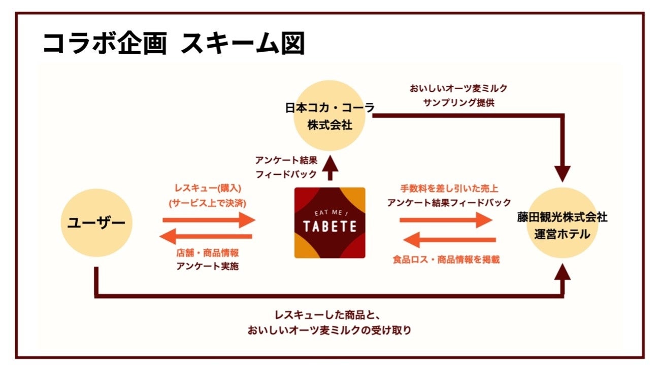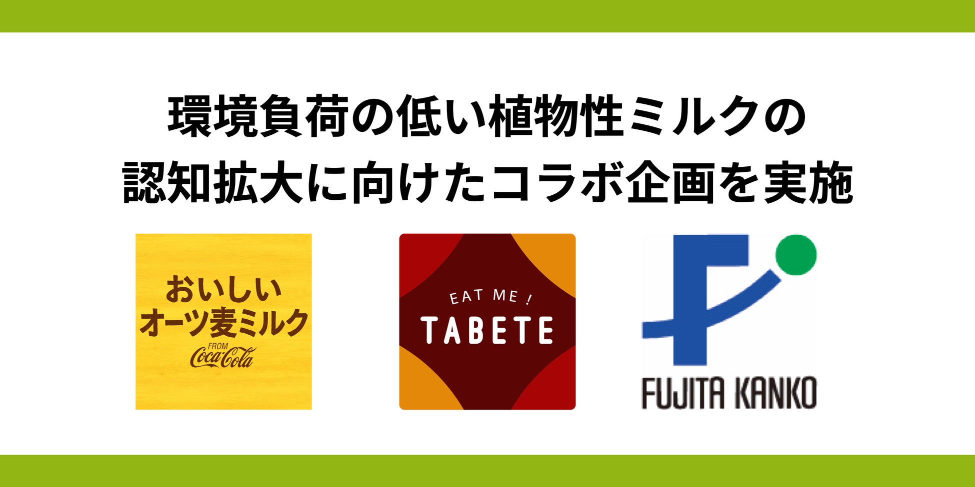 フードロス削減サービス「TABETE」・国内外で49ホテルを運営する「藤田観光株式会社」・おいしいオーツ麦ミルクを手がける「日本コカ・コーラ株式会社」の3社で連携し、環境負荷の少ない植物性ミルクの認知促進に向けたコラボキャンペーンを実施いたします。