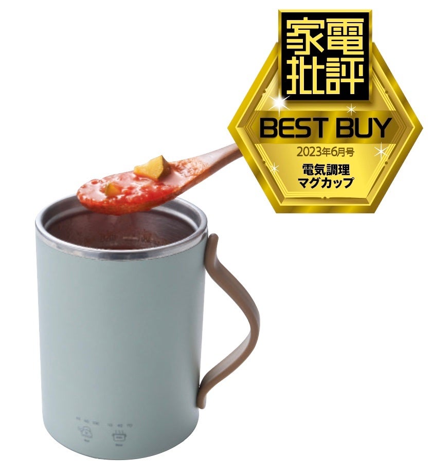 マグカップサイズの電気調理器。お湯を沸かすだけでなく、具材を投入しスイッチを入れるだけで自動で調理できます。調理といっても「煮る」しかできませんが、スープやリゾットも作れて、応用の幅はかなり広いです。作れる分量は一人分ですが、完成した料理をそのまま食べられるのが手軽で、アウトドアで使いやすいのも◎。その他にも小腹がすいた時の夜食や、小さな子ども用におかゆを作るなど、普段使いにも活用できる優れた製品です。