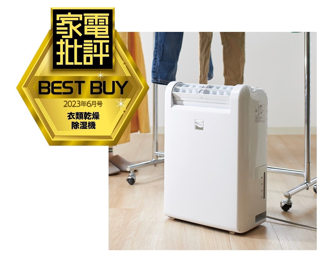 欠点がほとんどなく、どのテスト項目も平均点以上。そのなかでも、とくに便利なのが衣類乾燥の自動モード。ボタンを1回押すだけで、洗濯物の状態をセンサーで感知して最適運転してくれるため、湿度や風量などをいちいち設定する必要がありません。コンパクトで設置性が高く、タンクもお手入れしやすいなど、細かな使い勝手も優秀です。衣類乾燥の乾燥率は及第点をマーク。電気代も最安ではないものの、乾燥と除湿ともに検証機のなかでは上位の成績です。ストレスフリーで総合力に優れた三菱は、リビングから寝室まで、どんな部屋でも活躍できる一台です。