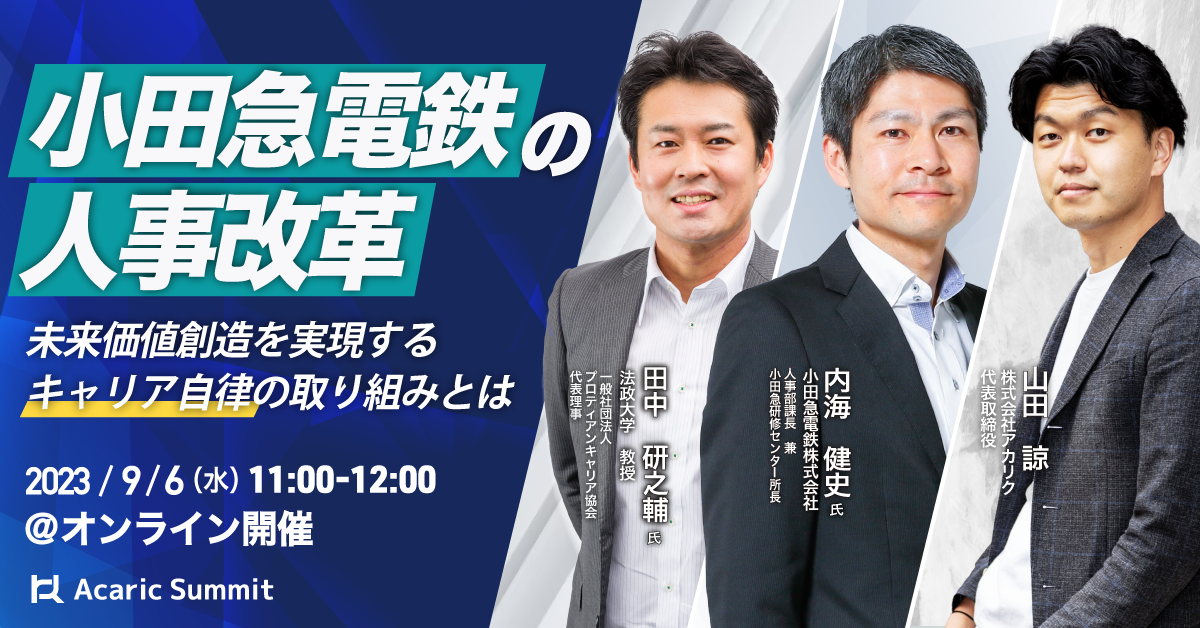 2023年9月6日(水)11:00 - 12:00 @オンライン【小田急電鉄株式会社 人事部課長 兼 小田急研修センター所長 内海氏 × 法政大学キャリアデザイン学部教授 田中氏が登壇】