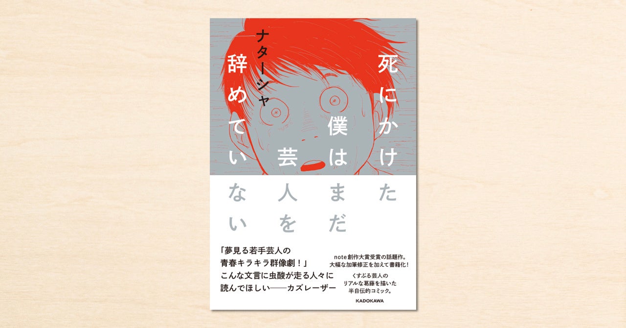 その中でナターシャさんの『芸人が死にかけて今後について悩む話』を書籍化しようと思った理由は大きく2つあります。1つはタイトルにインパクトがあり、最後まで読み終えた時に「続きを読みたい」と思わされる内容だったこと。もう1つは、プロの芸人さんだからこそ描けるリアリティを作品の中から感じたからです。