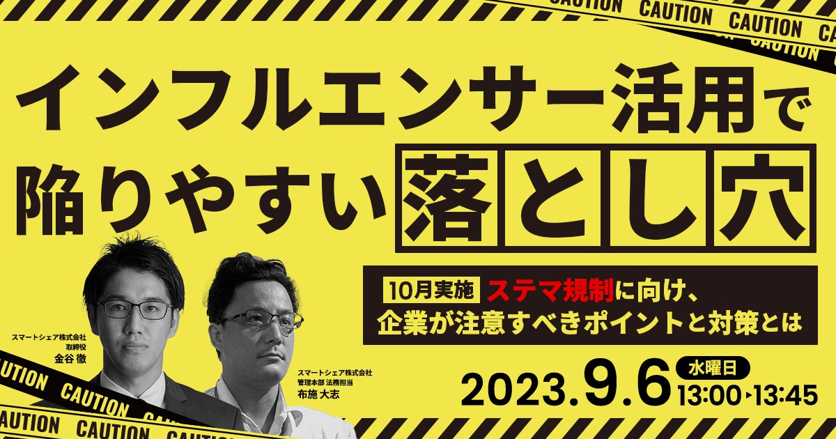 【2023/9/6(水)無料セミナー】インフルエンサー活用で陥りやすい落とし穴〜10月実施のステマ規制に向け、企業が注意すべきポイントと対策とは〜