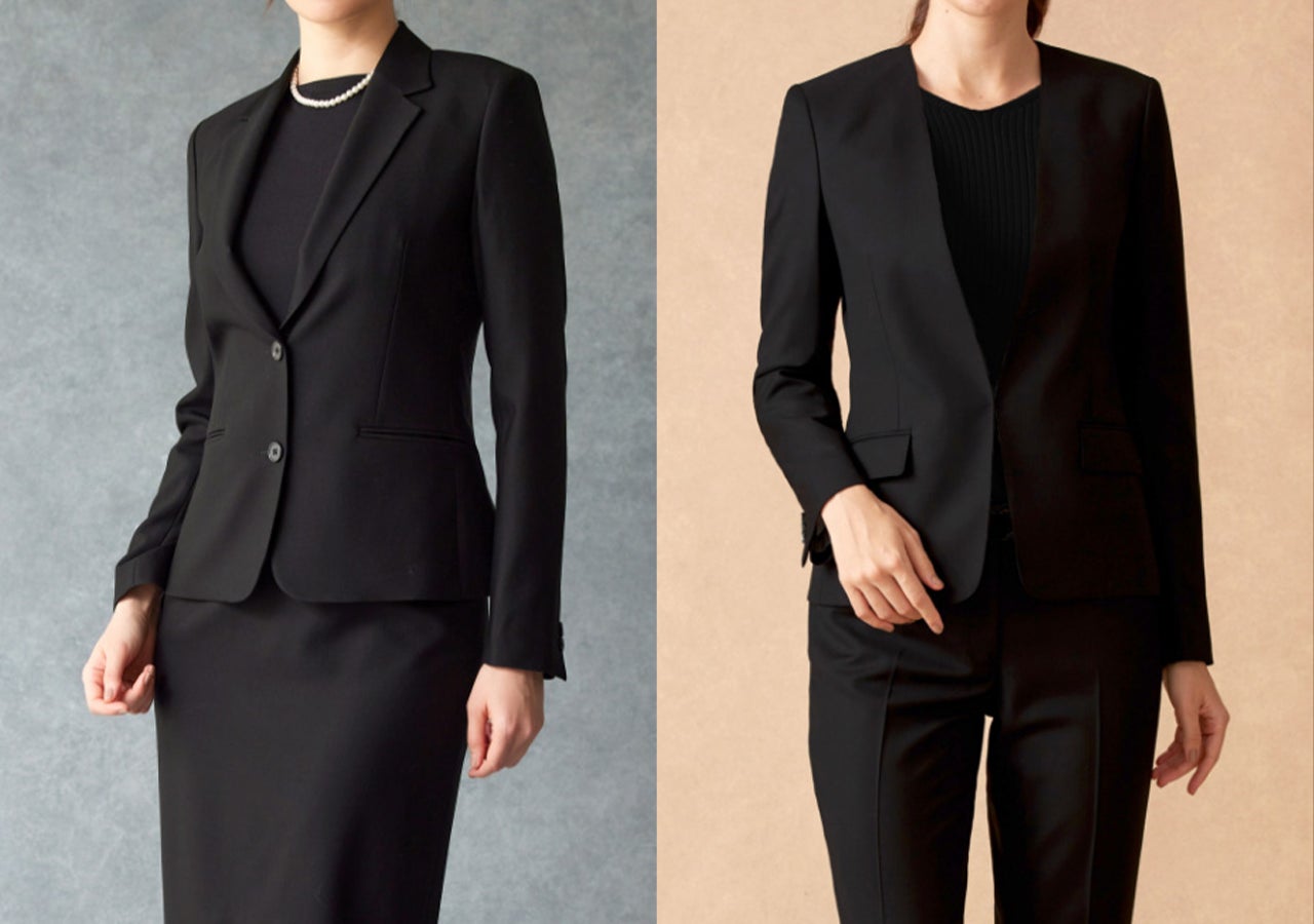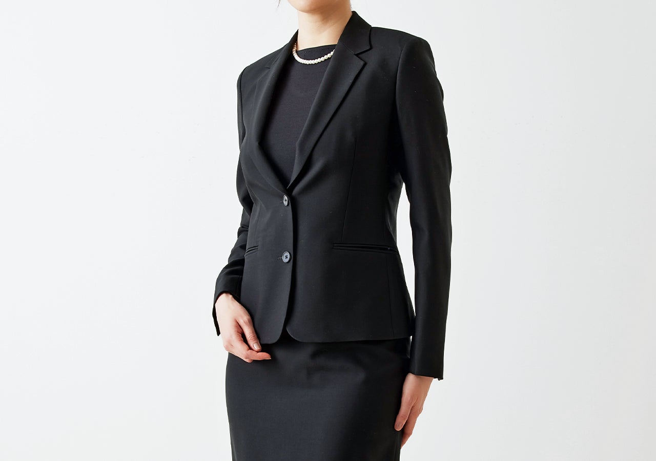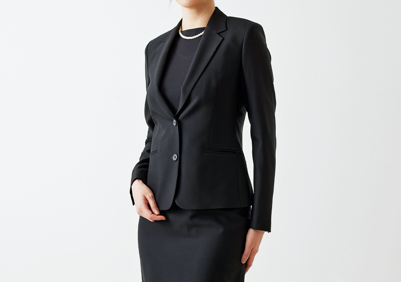 ノーカラージャケットは、シンプルでありながらも洗練されたデザインで冠婚葬祭で幅広く活躍。