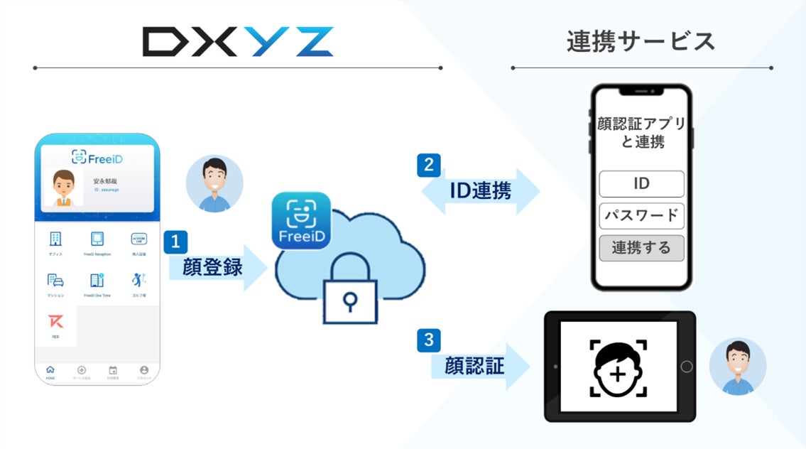 DXYZでは、「FreeiD」の顔認証基盤との連携により、誰もが自由に顔認証サービスを開発・導入できるようにするプラットフォームを提供しております。1度の顔登録で人々の「暮らす×働く×遊ぶ」を繋ぎ、より自由に、思い立った瞬間に行動できる、魅力的な世界を実現し、「人と人の深く温もりある繋がりを創る」ことを実現させていく予定であります。