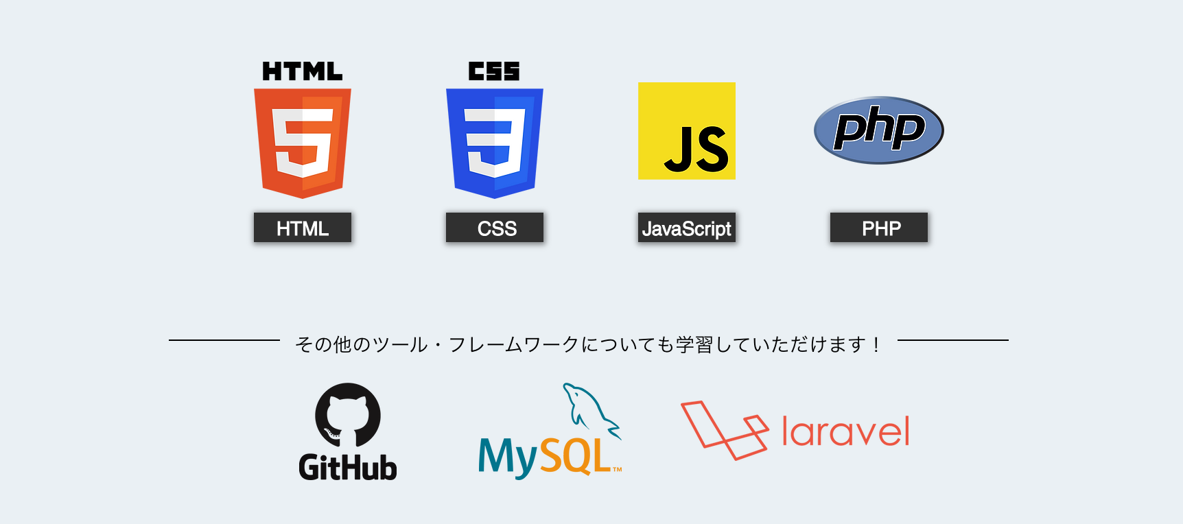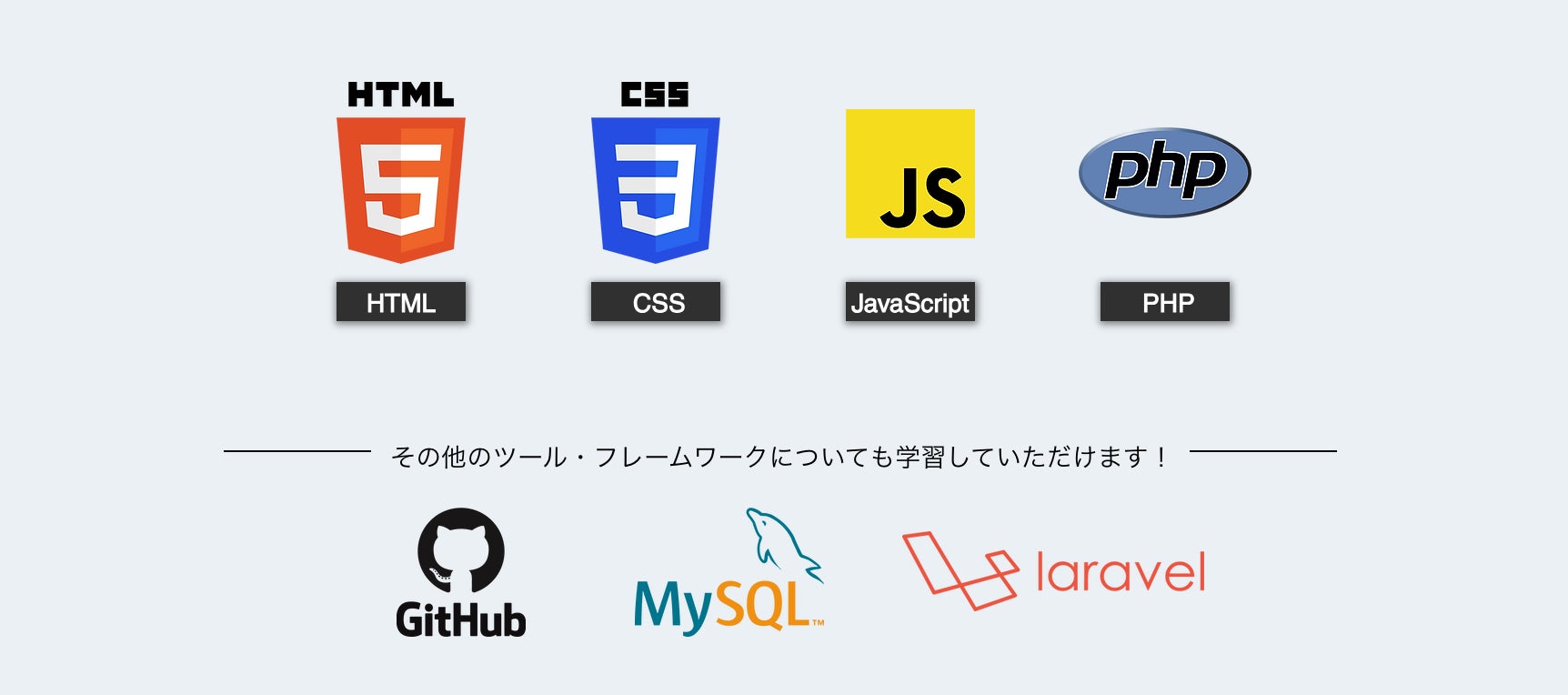 HTML/CSS、JavaScript、PHP、SQLなどWeb開発に必須となる言語を学習し、