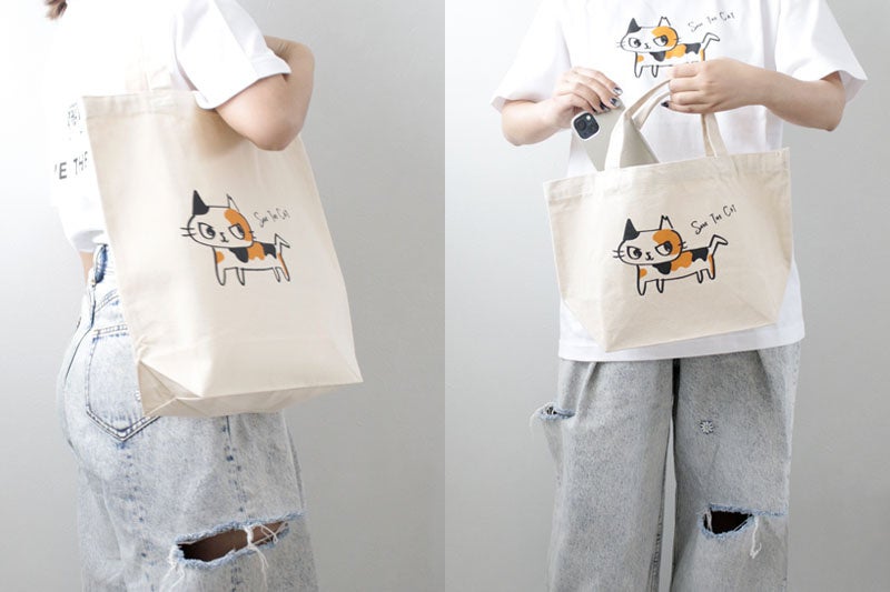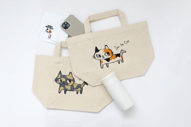 幸運を呼ぶ鍵しっぽで猫助け!?ネコリパブリック首相・河瀬麻花の描きおろしイラストがかわいいTシャツ・トートバッグが登場!収益は保護猫活動に役立てられます。