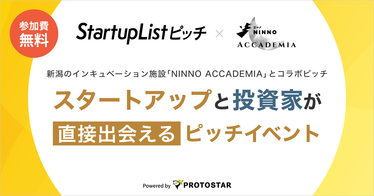 挑戦者支援をミッションに掲げるプロトスター株式会社(本社:東京都中央区、代表取締役:前川英麿)は、新潟県のスタートアップ4社が集う「StartupListピッチ with NINNO ACCADEMIA」を開催いたします。