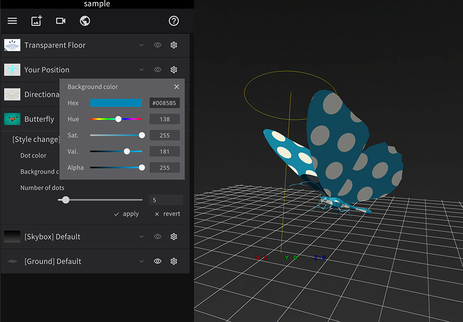 その言葉どおり、STYLY Studio上で配置したオブジェクトに、これまでUnity等のゲームエンジンや3Dソフトを経由せずには不可能だった「修正・変更」を加えることができます。