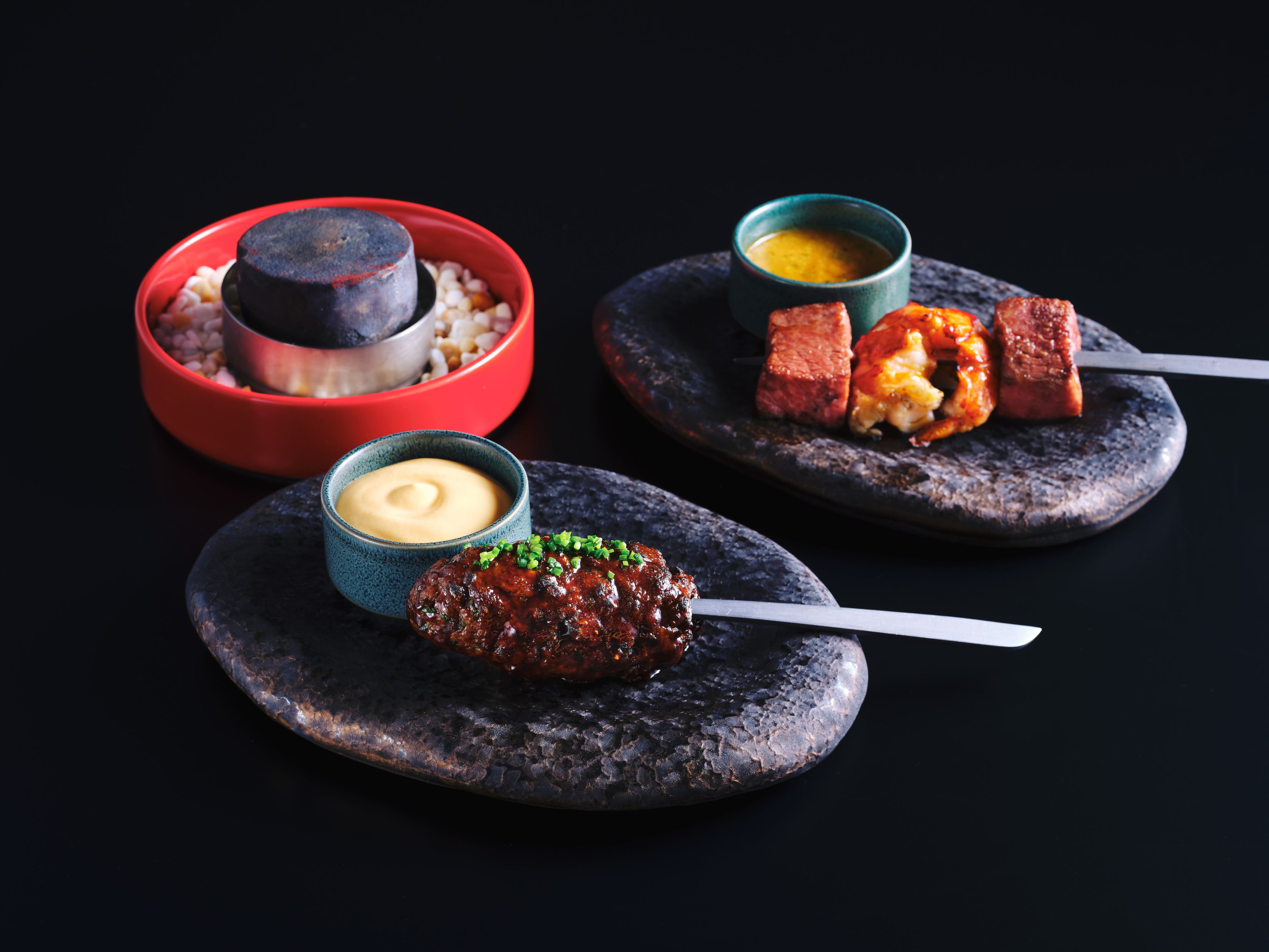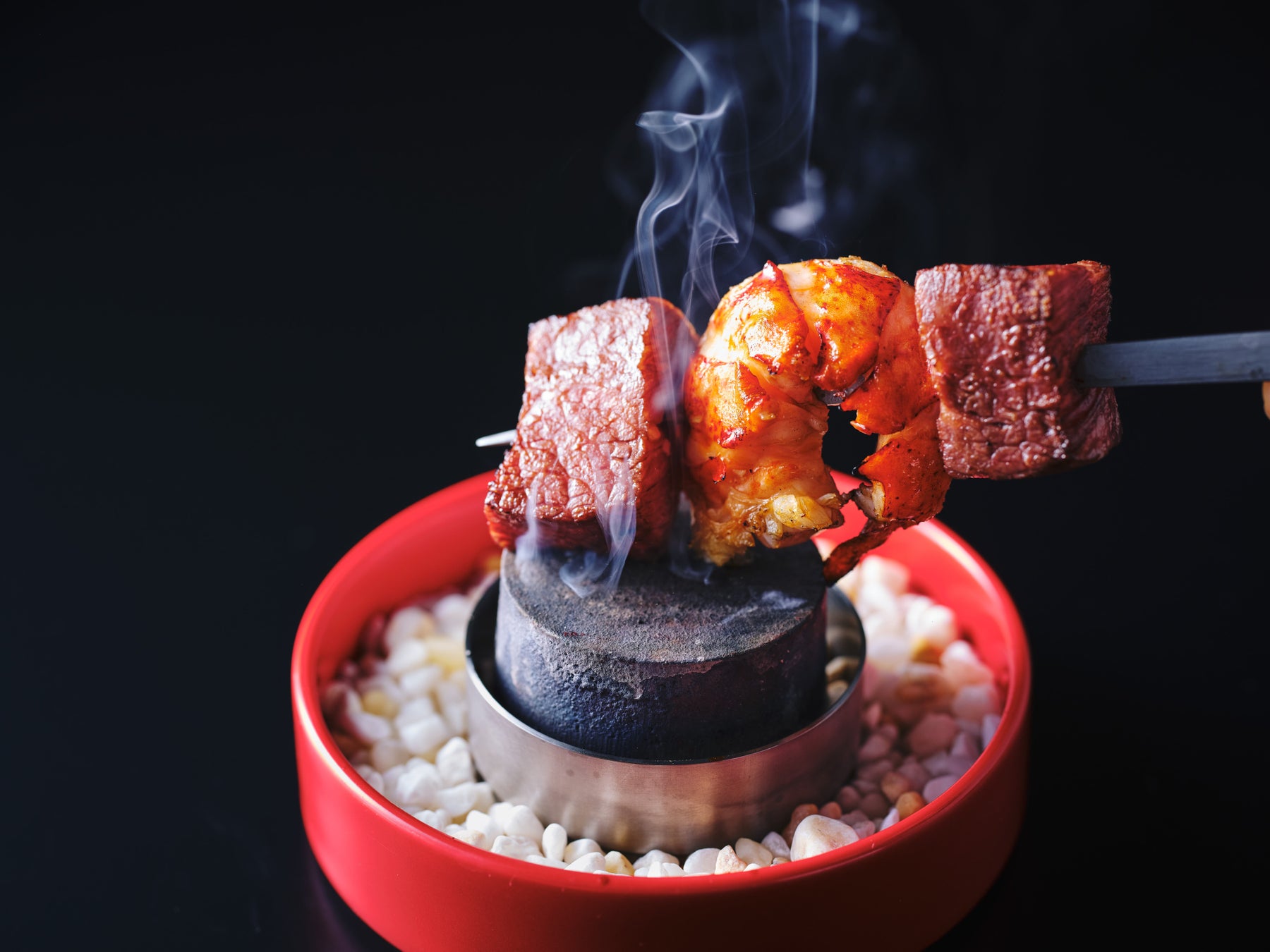 串焼き (和牛×ロブスター 薪焼き完熟トマトソース、