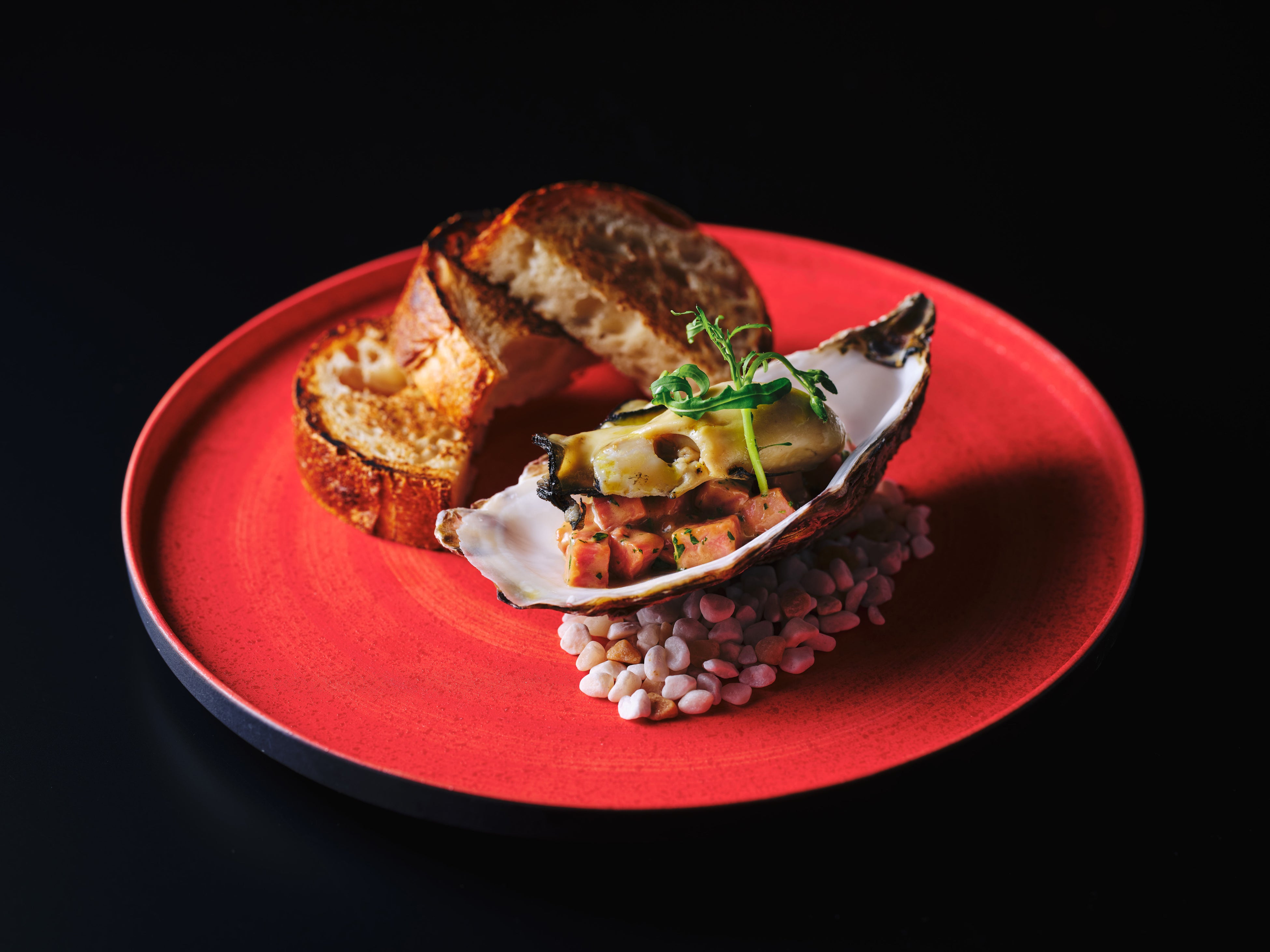 和牛タルタル×牡蠣のコンフィ スモークした大阪とりゐ味噌ヨーグルト