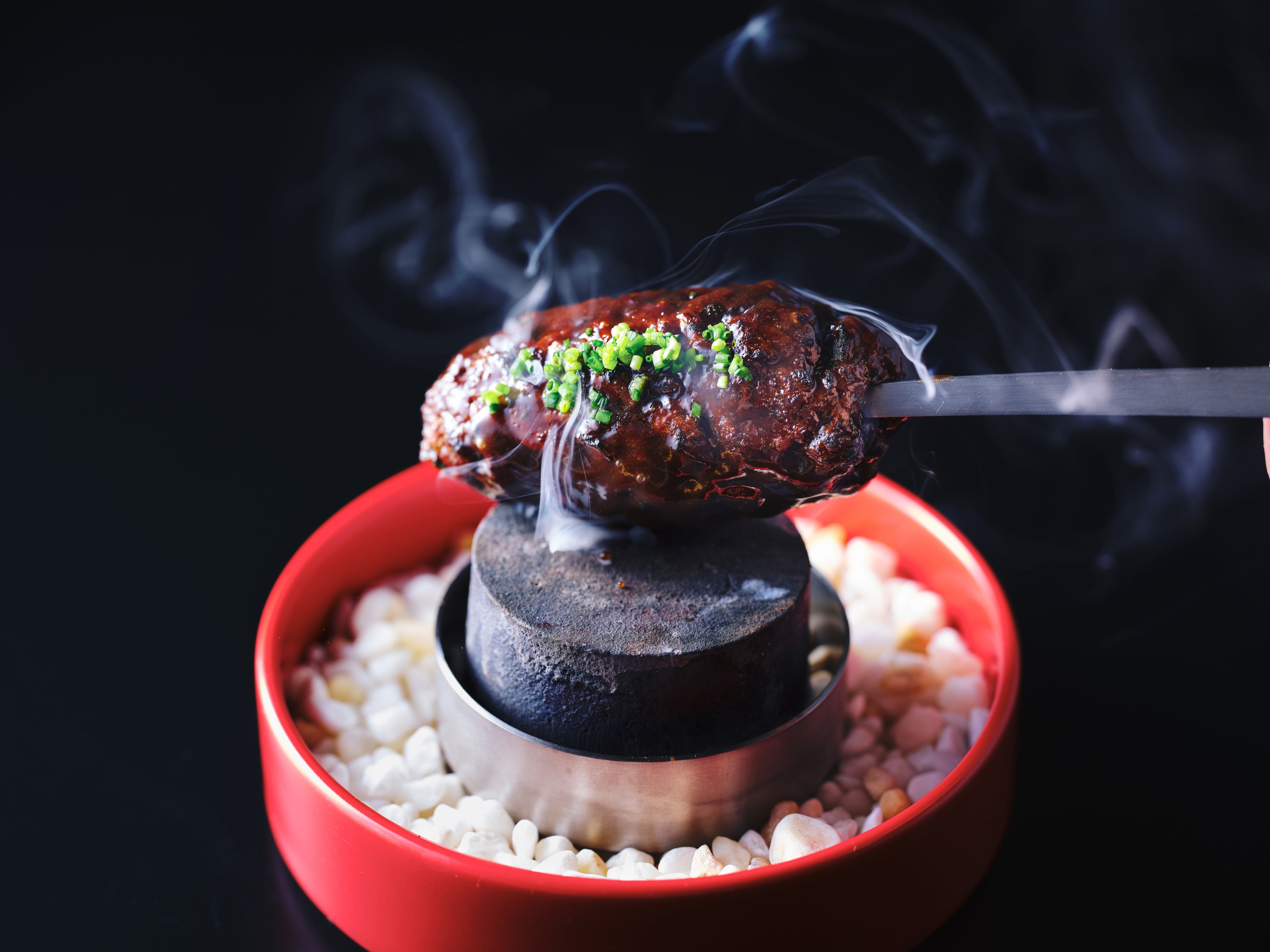 低温調理した和牛とロブスターを熱した石でご自身で焼き加減をお好みで調整しながらお召し上がりいただきます。薪焼きトマトソースの芳ばしい香りが食欲をそそります。