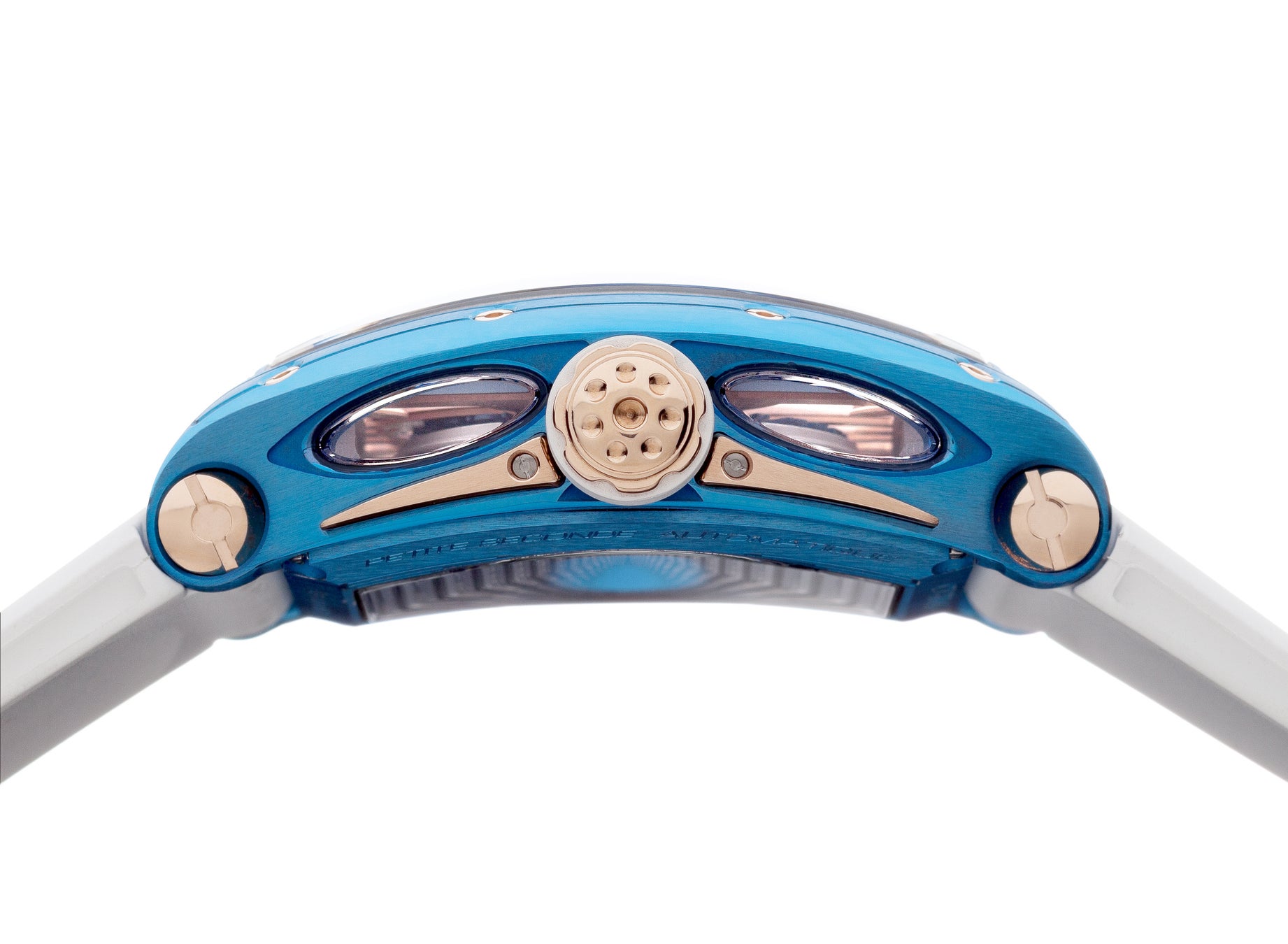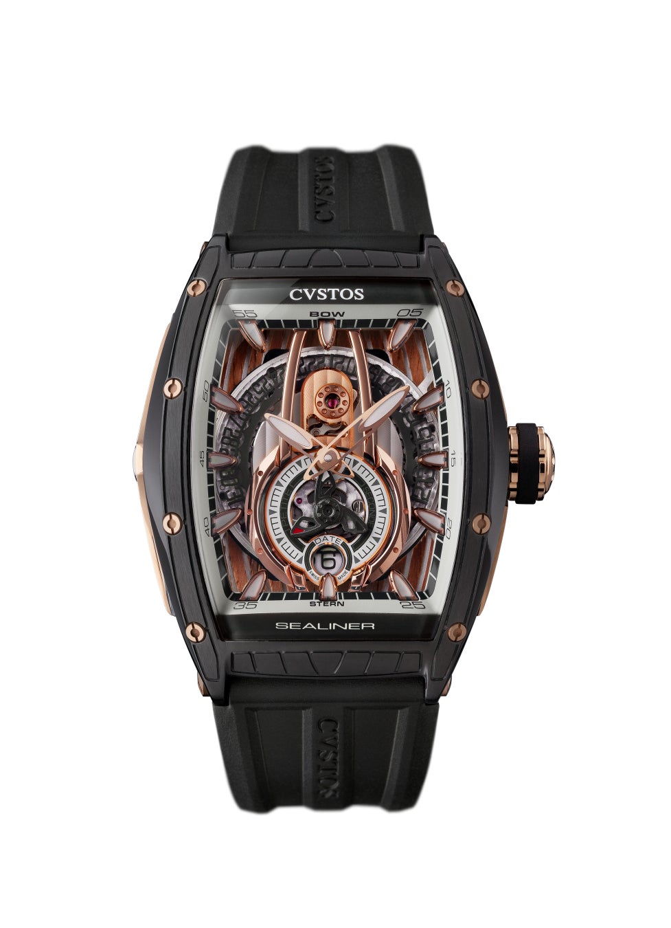 2021年にリリースした青空のように鮮やかなスカイブルーPVDに対して、ニューモデルは夜を思わせる深みのあるブラックPVDをケースに採用。漆黒のケースには煌めきを放つ18Kレッドゴールドのビスとリュウズが組み合わされ、夜空と光が溶け合うナイトクルーズを想起させます。ブリッジに接合した高級チーク材、ケースの両側面に備えられた舷窓をイメージした4つの開口部をはじめ、デザイン、マテリアル、そしてカラーリングに至るまで海の世界観を表現した「チャレンジ シーライナー P-S オートマティック」。6時位置に備えられたスモールセコンドは、舟艇に取り付けられた本物のスクリューの動きと機械式時計のメカニズムをリンクさせるため、ムーブメントに永久磁石を採用した新技術を搭載しています。