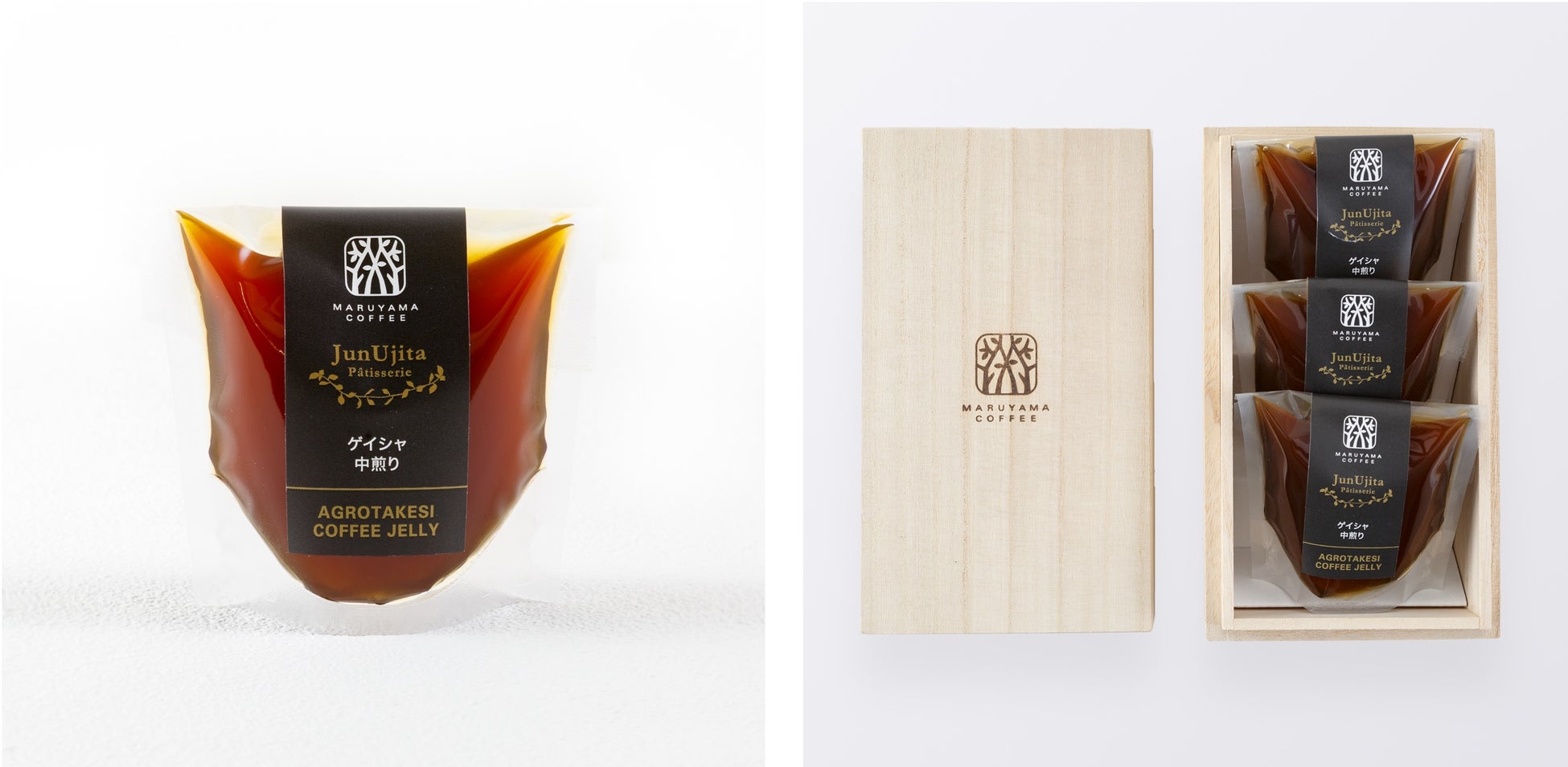 丸山珈琲が厳選した素材とパティスリー ジュンウジタの宇治田シェフの技術が生み出した香り豊かな「アグロタケシ ゲイシャ コーヒーゼリー」をお楽しみください。