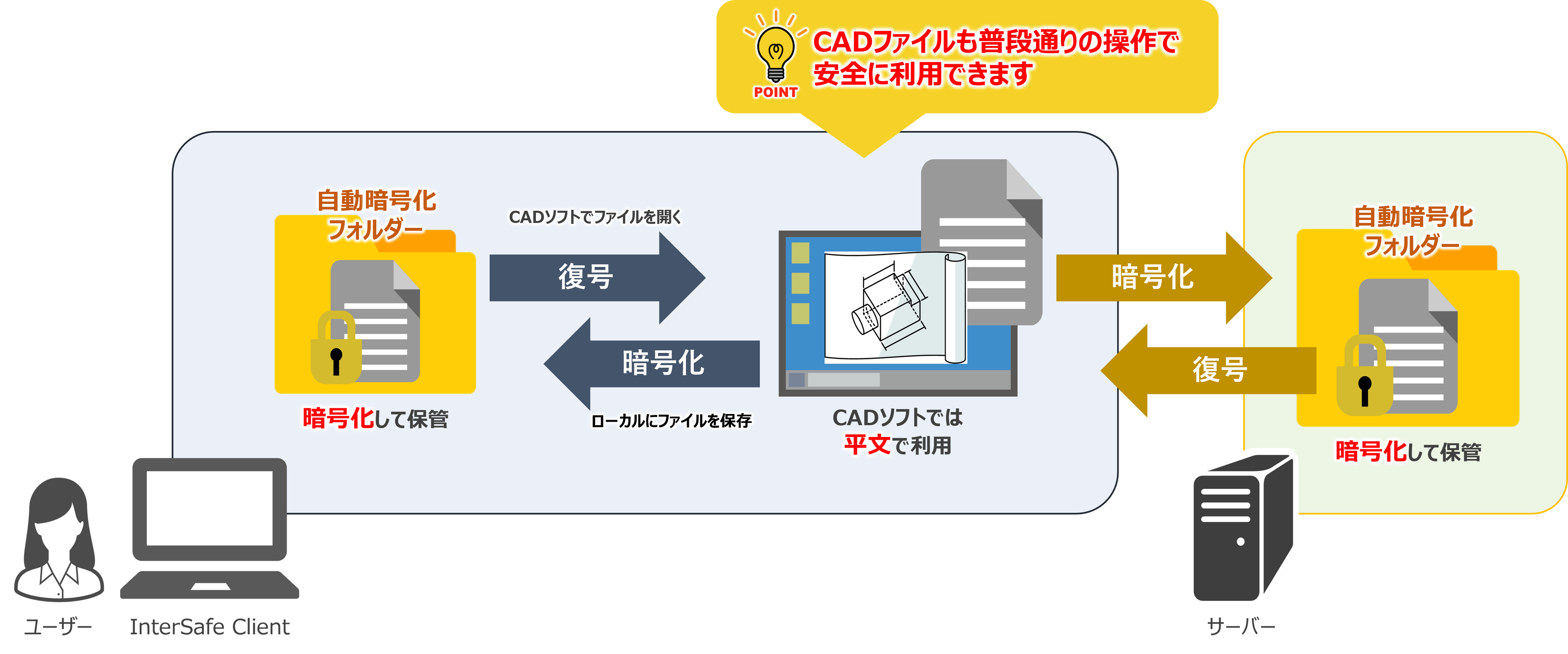 主なポイント | ファイル自動暗号化機能(InterSafe FileProtection)の強化 •CADアプリケーションへの対象拡充 |