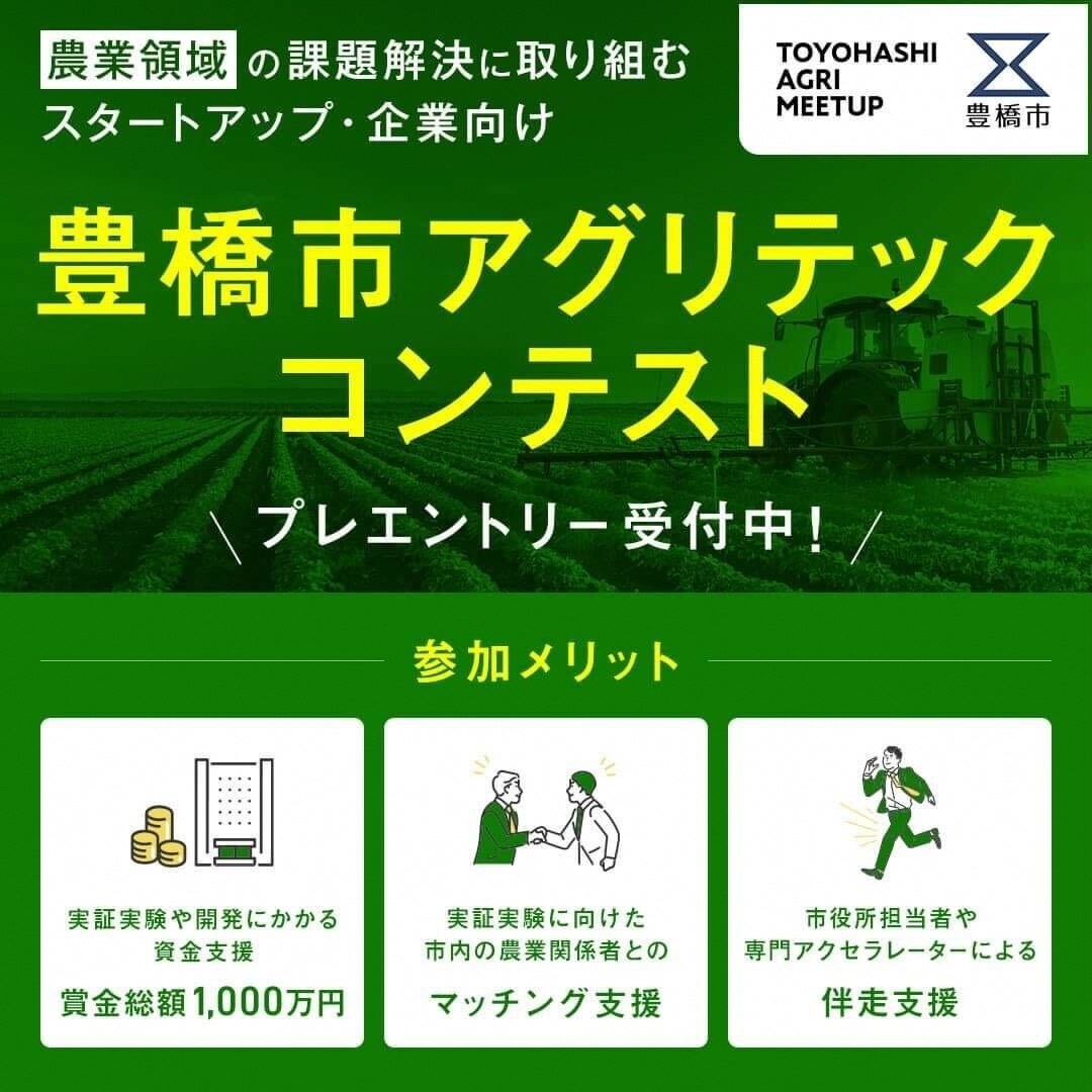 全国有数の農業地帯、愛知県東三河地方。中心都市の豊橋市は今年度から、農業イノベーションの創出を目指し、スタートアップと地元の農業関係者による実証開発プロジェクト「TOYOHASHI AGRI MEETUP」を始めます。地域の農業課題を解決するスタートアップを全国から募り、実証開発を進める約3年の取り組みです。賞金総額1,000万円のコンテスト形式でスタートアップの提案を審査します。現在、プレエントリーを受付中です。