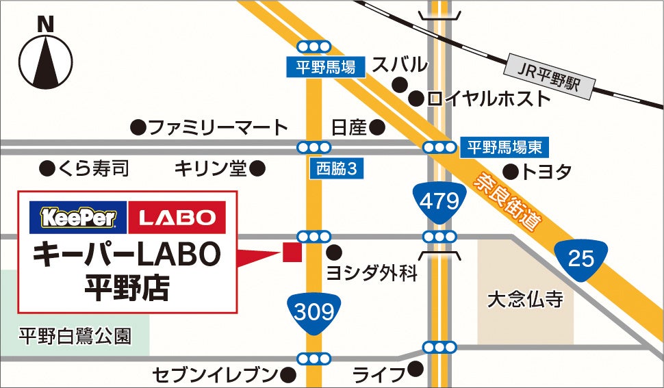 KeePer LABO 平野店は、主要道路である国道309号線に面した店舗で、大阪市内で1番人口(約19万人)の濃い場所に位置しているため、 早く高い認知が期待できます。大阪市内で2店舗目、大阪府では6店舗目、直営店舗として108店舗目そして、FC含む全店として121店舗目となります。
