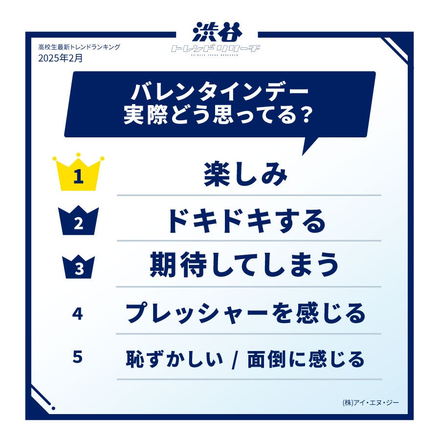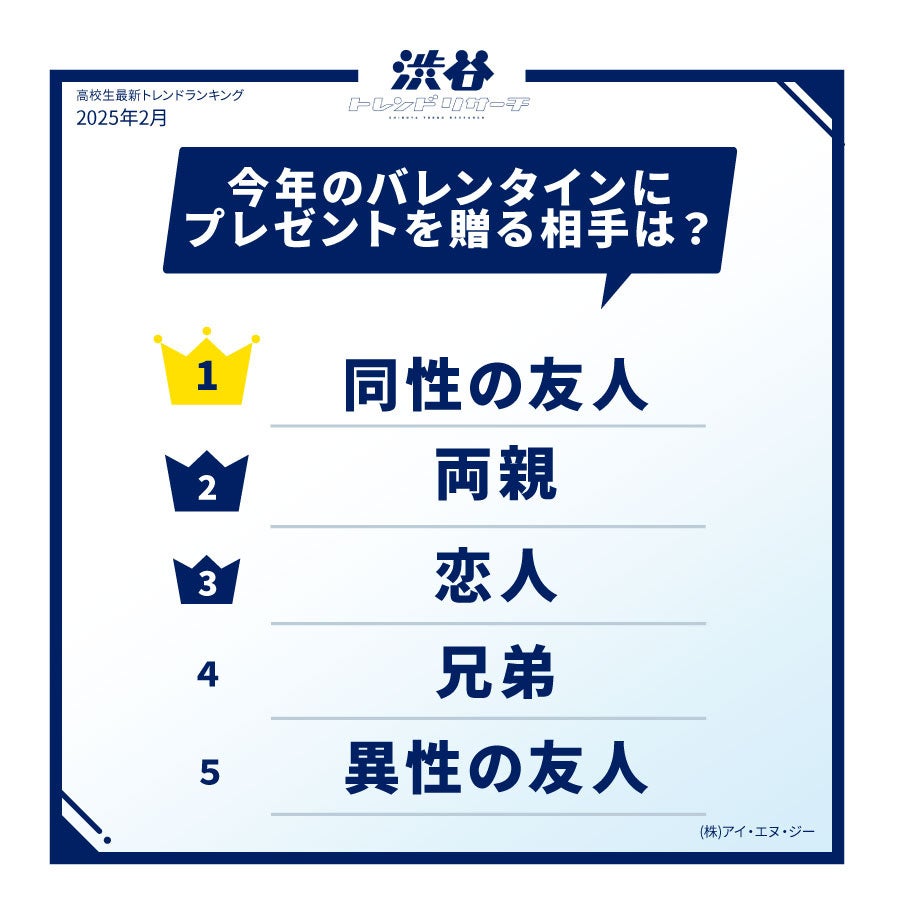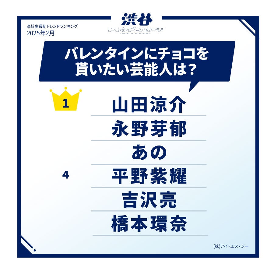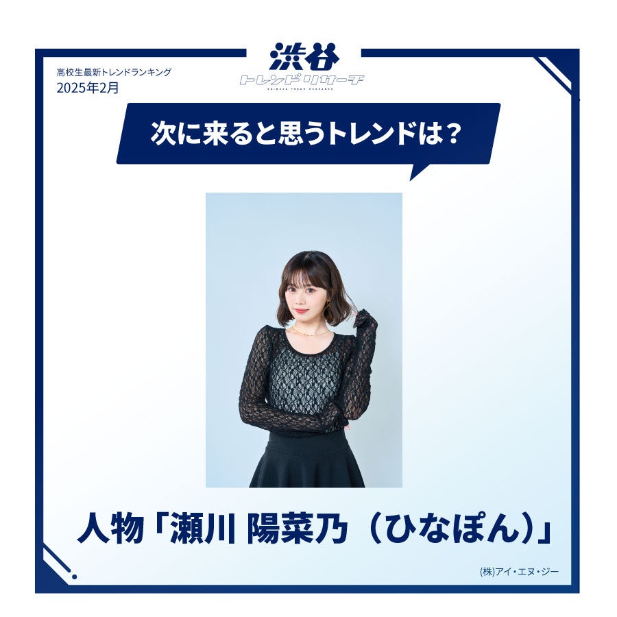 【イマドキ高校生の最新!バレンタイン調査】バレンタインにチョコをもらいたい芸能人TOP10を発表!今月のネクストトレンド「瀬川 陽菜乃」とは…?高校生の最新トレンド2025年冬!渋谷トレンドリサーチ