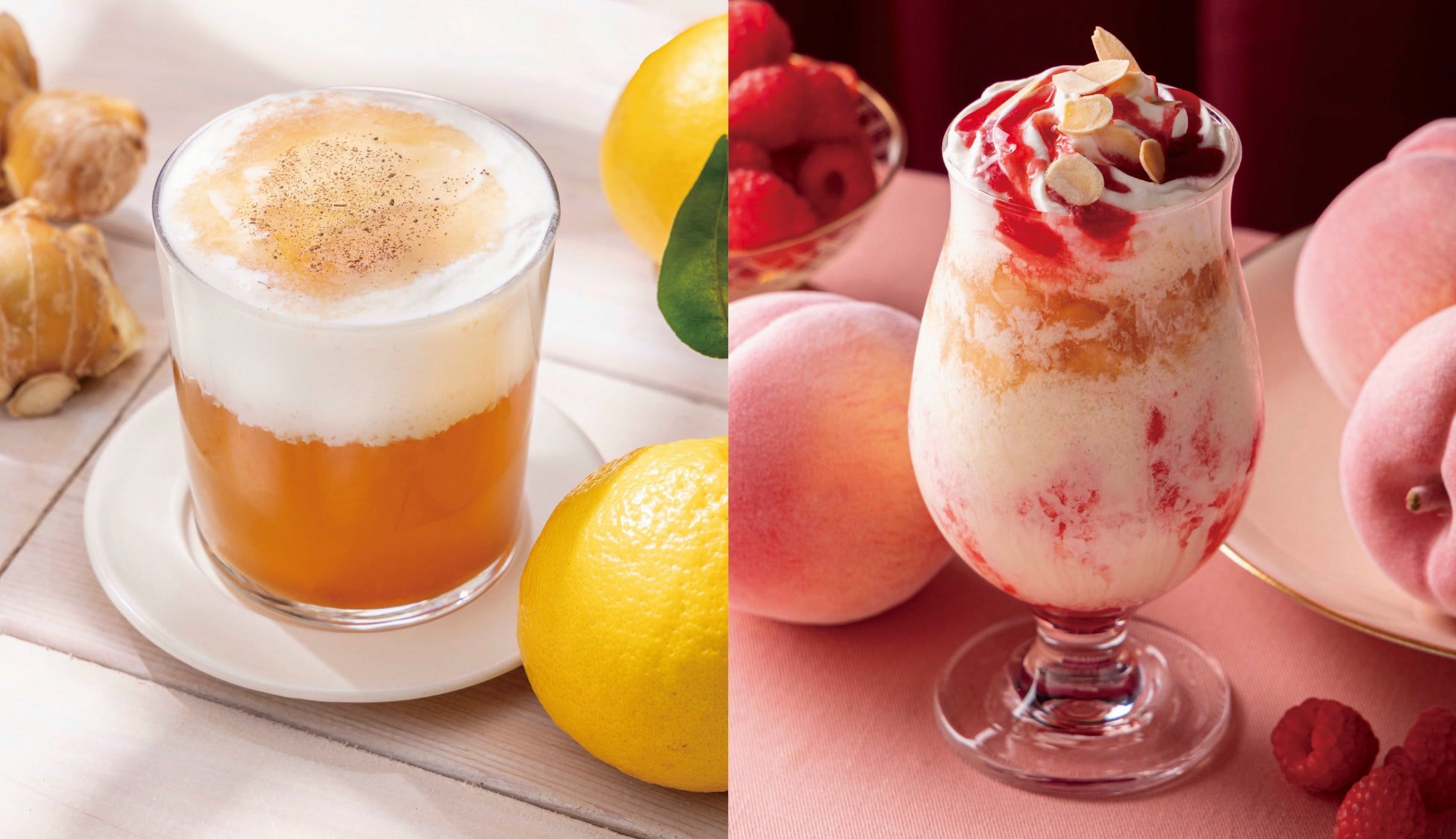猿田彦珈琲株式会社(本社:渋谷区/代表取締役:大塚朝之)が運営するスペシャルティコーヒー専門店「猿田彦珈琲」は、春季限定ドリンクとして、香り高い高知県産の生姜を使用した「ベルガモットジンジャーフロラッテ」と、フランス発祥のデザート“ピーチメルバ”から発想を得た、バニラビーンズの芳醇な香りと桃の食感を楽しめる 「ペッシュメルバのフラッペ」を 2025 年 4 月 1 日(火)より発売いたします。