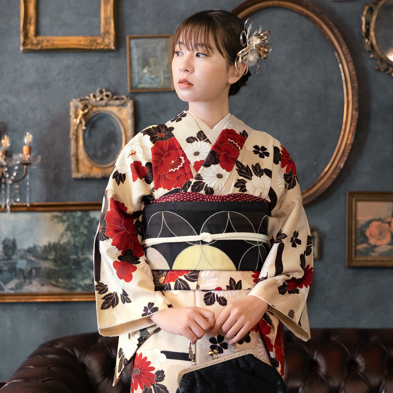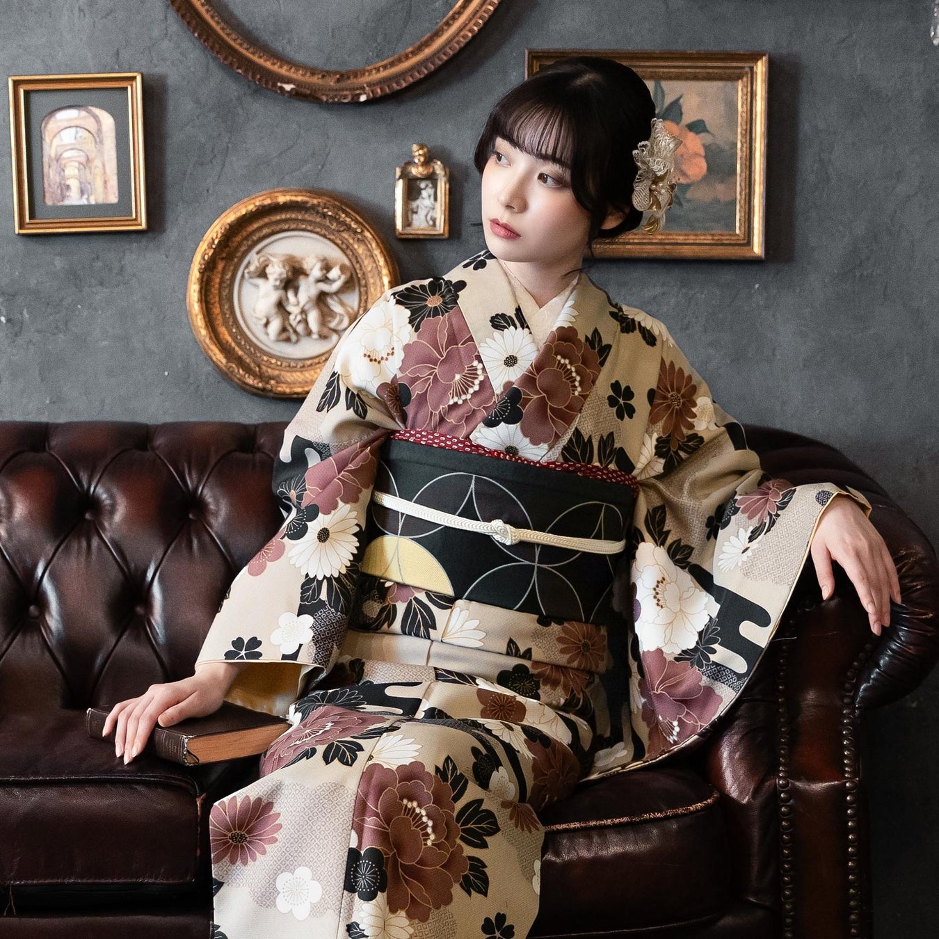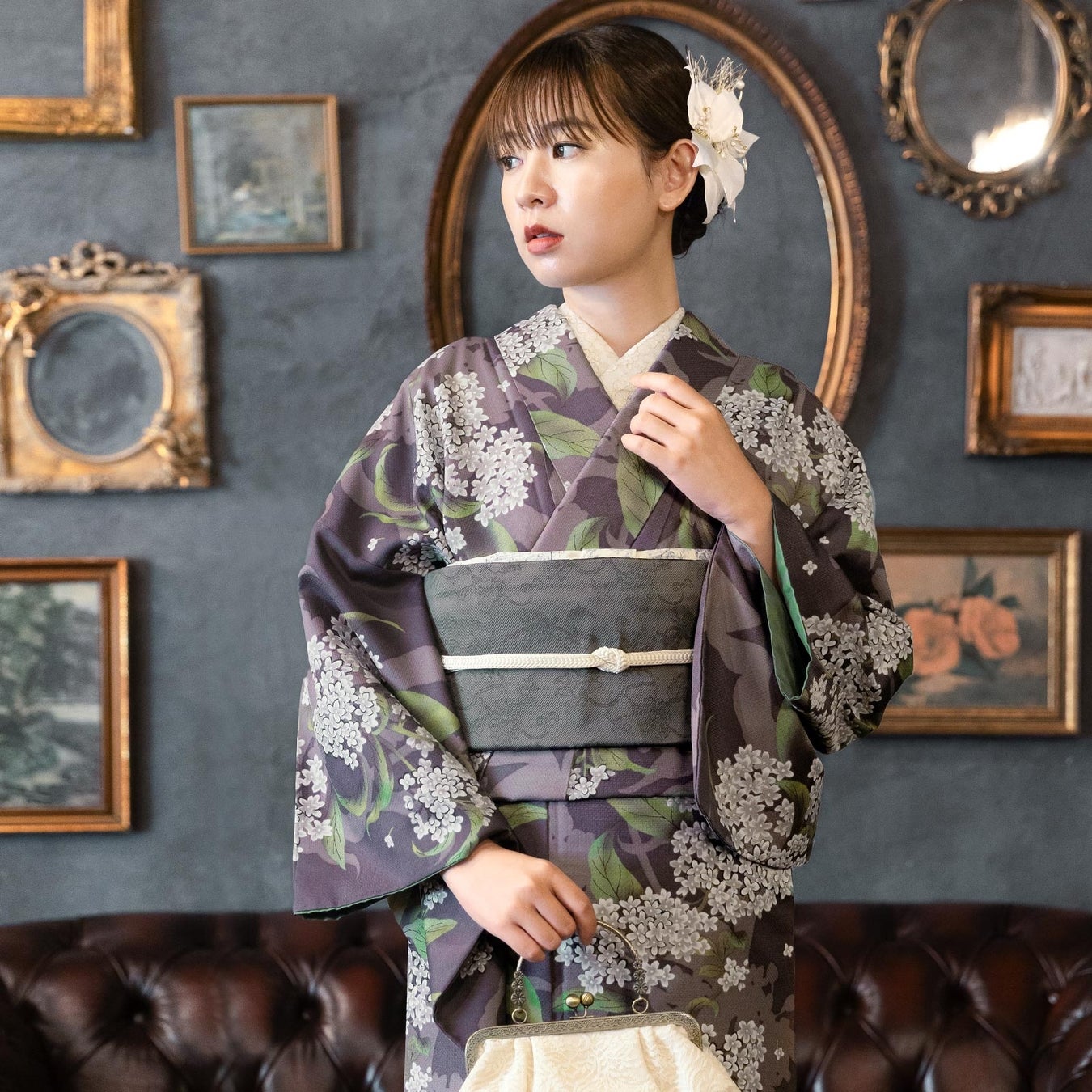 「気軽に着られるアンティーク着物」として古典的な花紋シリーズです。京都発のブランドらしく、友禅の図案を参照しモチーフを選んでいます。
