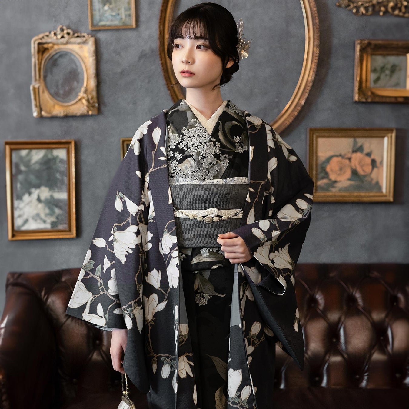 2025年のきもの福袋コレクションは「銀木犀」「アラベスクに南天」「雲に牡丹、花紋」「白木蓮」の4柄、それぞれ2配色、全8種類ご用意しています。