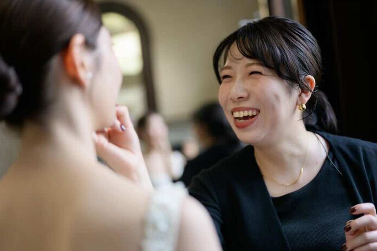 ブライダルヘアメイクとして活動。関西での経験を経て、現在は東京を拠点に多くの花嫁様を担当。丁寧なカウンセリングから当日まで寄り添い、トレンドを取り入れながらも「その人らしさ」や“似合わせ”のバランスを大切にしたヘアメイクを提案し、当日より楽しみになるような時間づくりを心がけている。