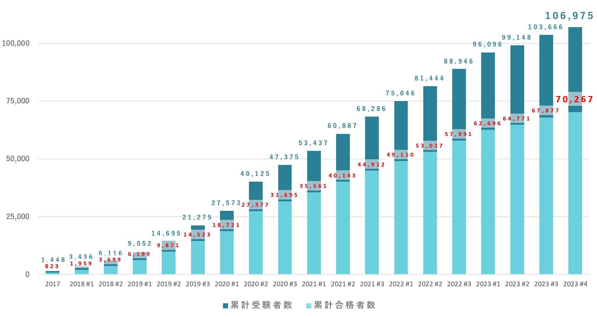 これにより、G検定の累計受験者数は106,975名、累計合格者数は70,267名になりました。