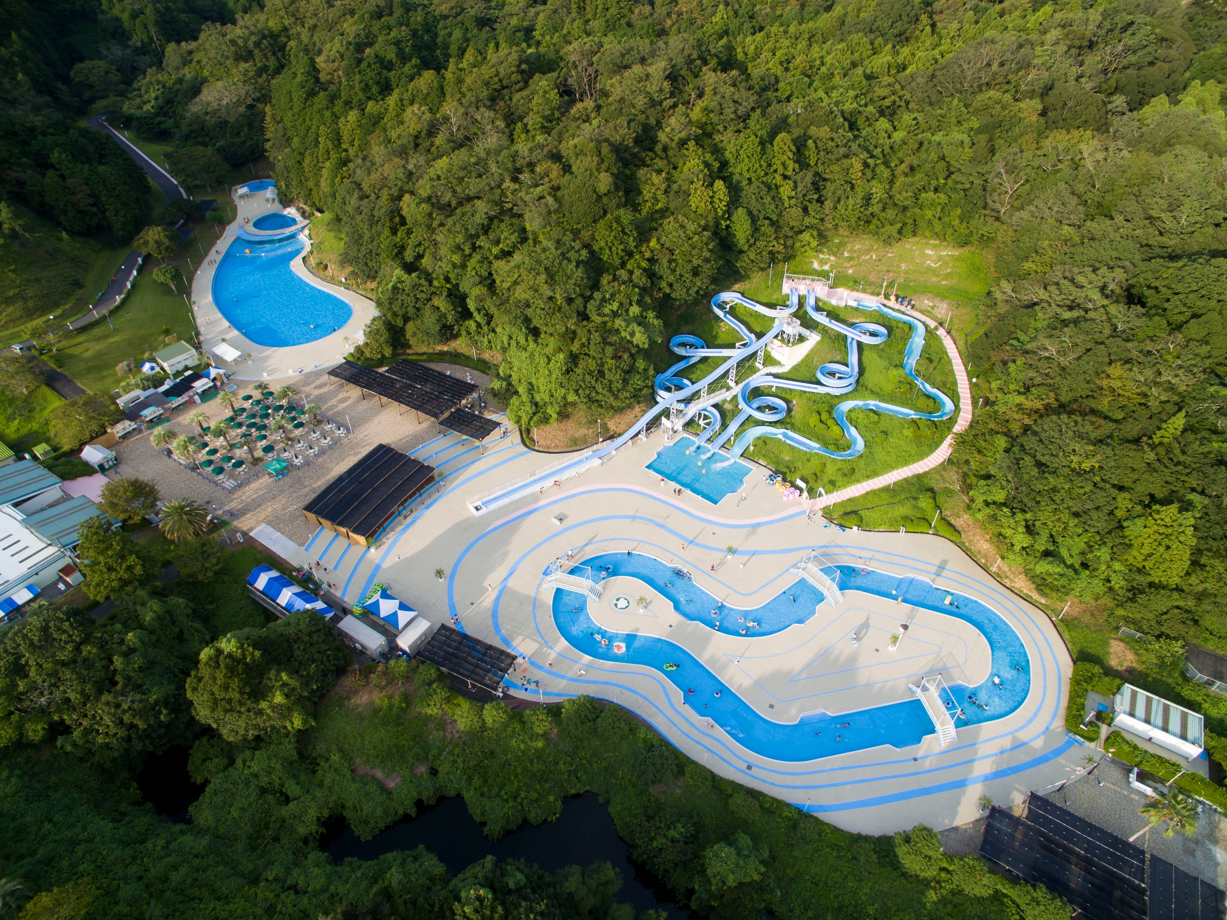 3つのスライダーに、流れるプール・子供用プール・飛込みプールほか、4つのプールがあります。
