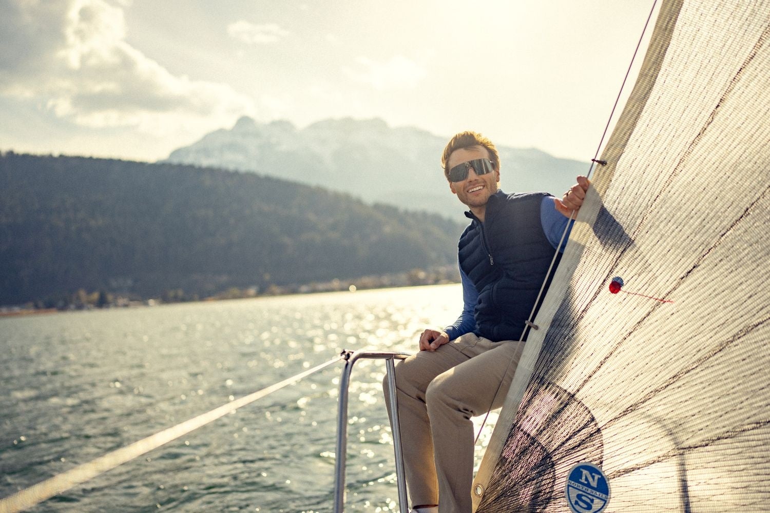 このように、マリンの世界に強いつながりを持つFALCONERIがこの度初めて「ジャパンインターナショナルボートショー2025」に初登場します。FALCONERIのアイコンである「カシミヤリバーシブルダウンベスト」をはじめ、軽量で通気性や保温性に優れた「ウルトラファインカシミヤセーター」など海上や海辺でも活躍する商品を展示・販売いたします。