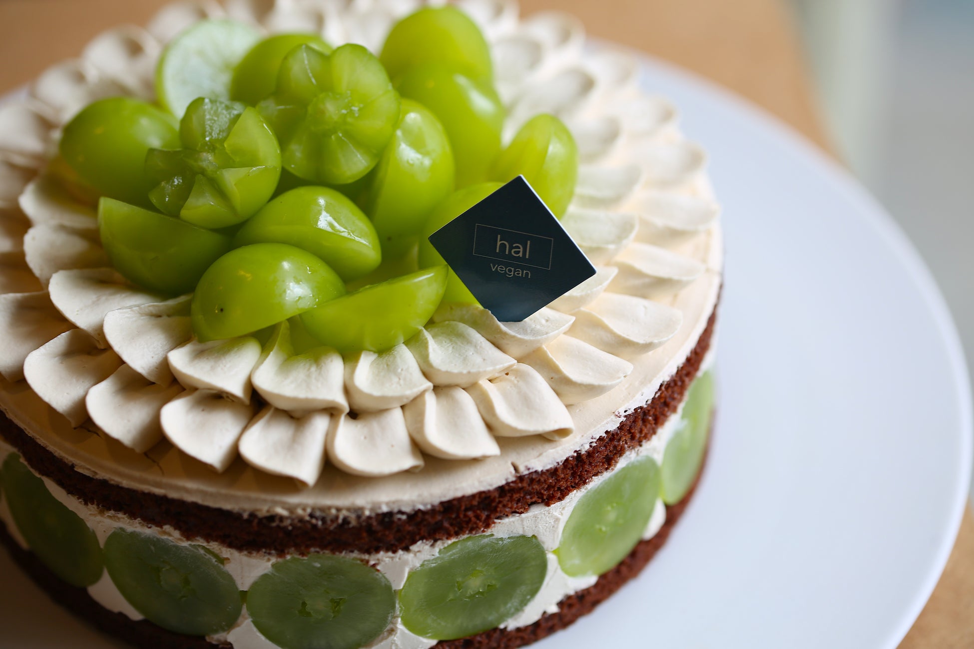 卵、乳製品、小麦粉不使用のココアとメイプル掛け合わせたスポンジとhal okada特製soyホイップクリーム、シャインマスカットを22個贅沢に使用したシンプルで味わいのあるプレミアムなショートケーキに仕立てました。