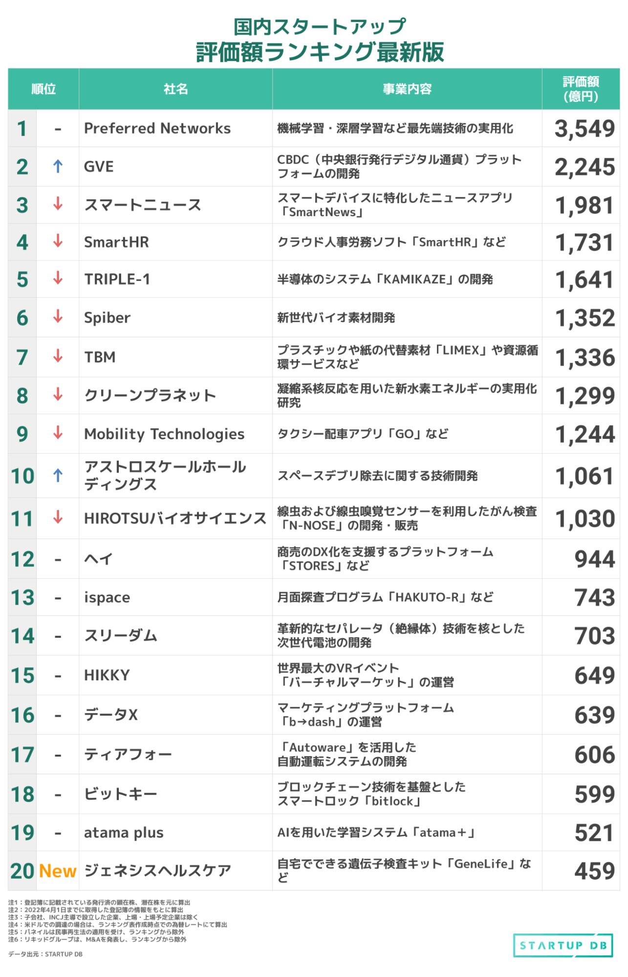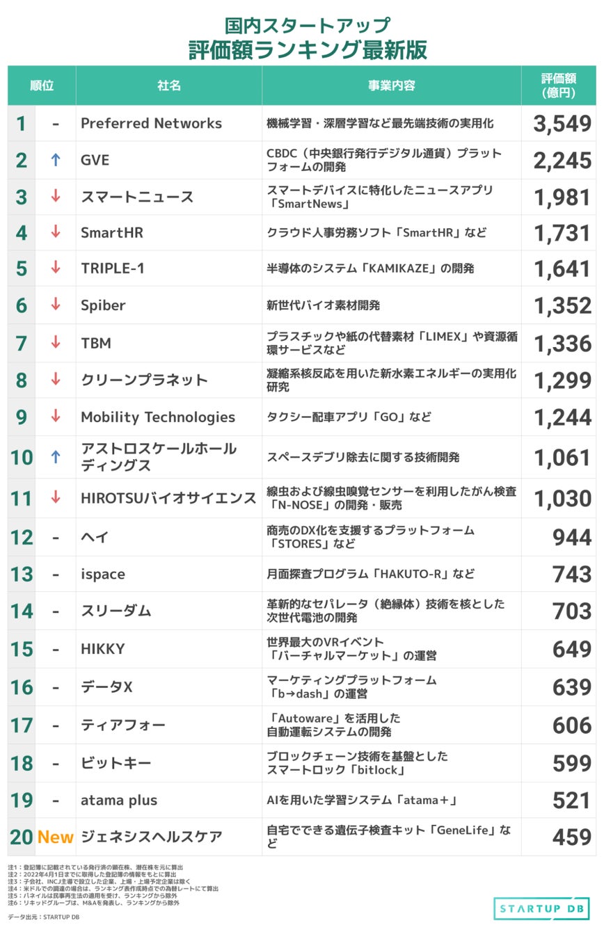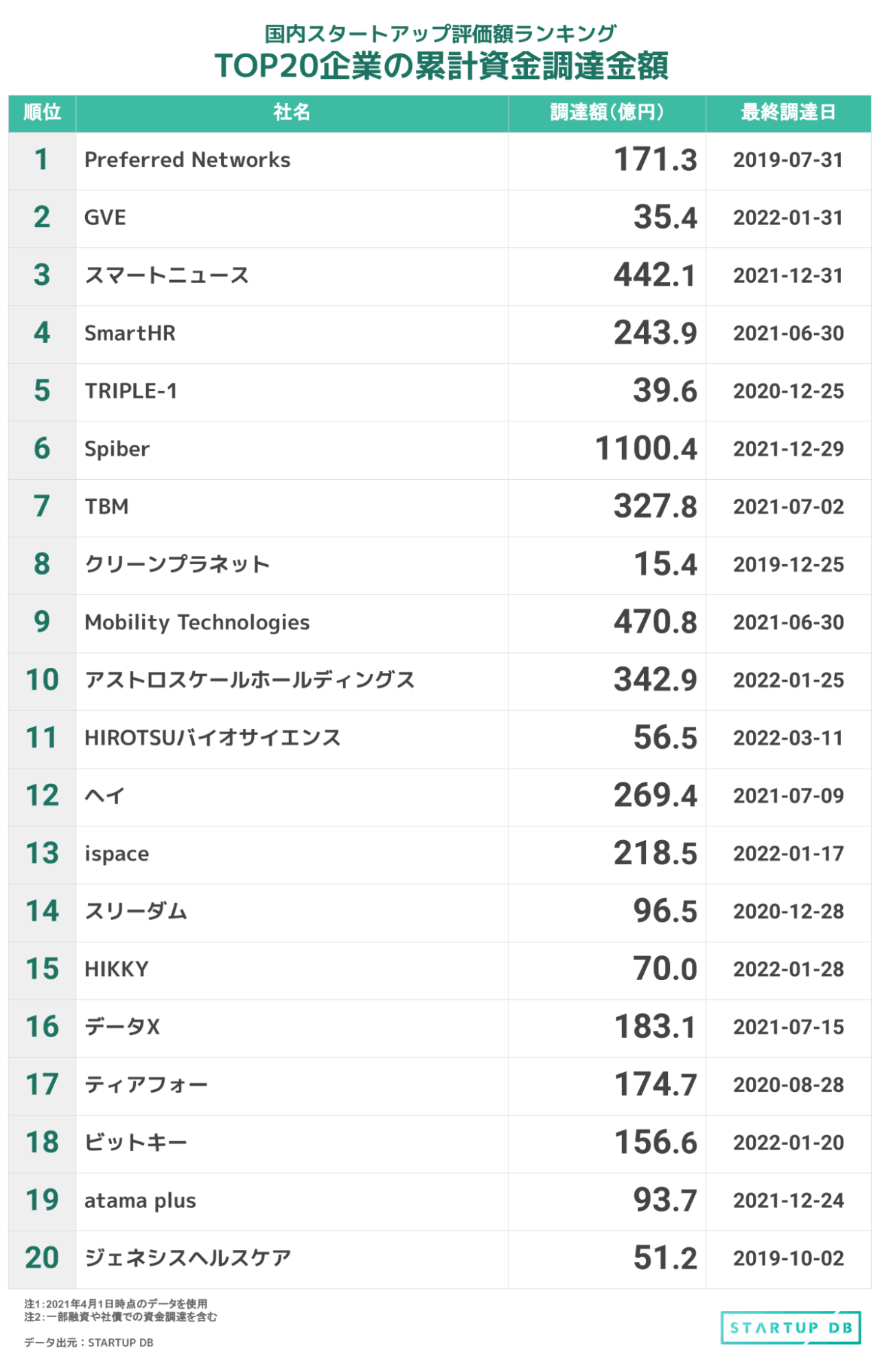 【STARTUP DB】調査結果 国内スタートアップ評価額ランキング最新版(2022年4月)