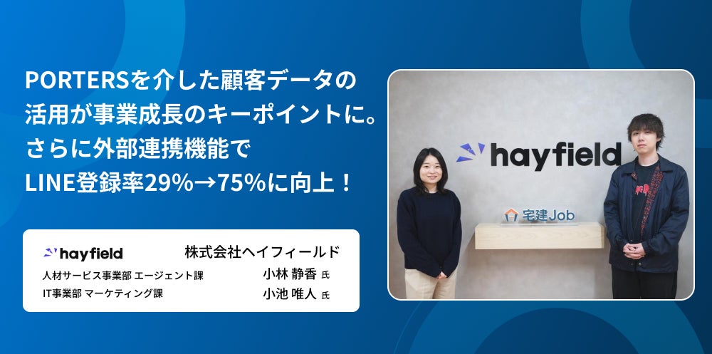人材ビジネス向けクラウドシステムを提供するポーターズ株式会社(本社:東京都港区、代表取締役:西森康二)は、不動産業界や建設業界を中心とした人材サービスを提供する株式会社ヘイフィールド(本社:東京都渋谷区、代表取締役:坂巻一樹、以下、ヘイフィールド)の導入後インタビューを実施し、その内容をまとめた記事を公開しました。