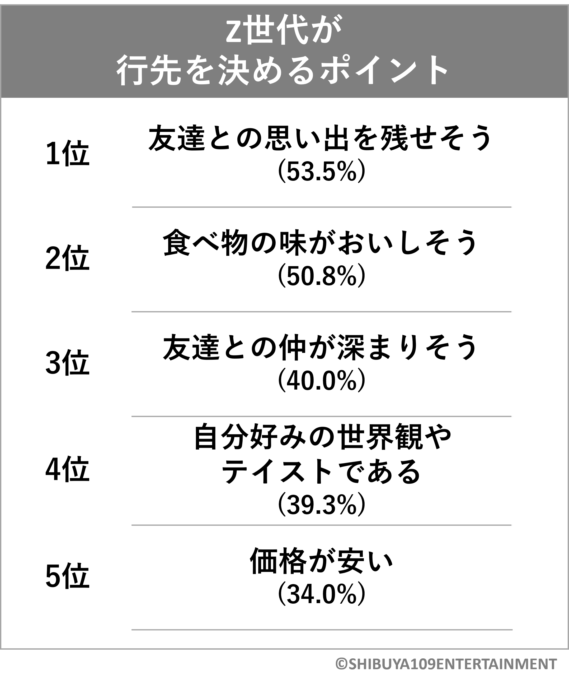 Z世代が旅行やおでかけなどの「体験」において重視しているのは「世界観」です。