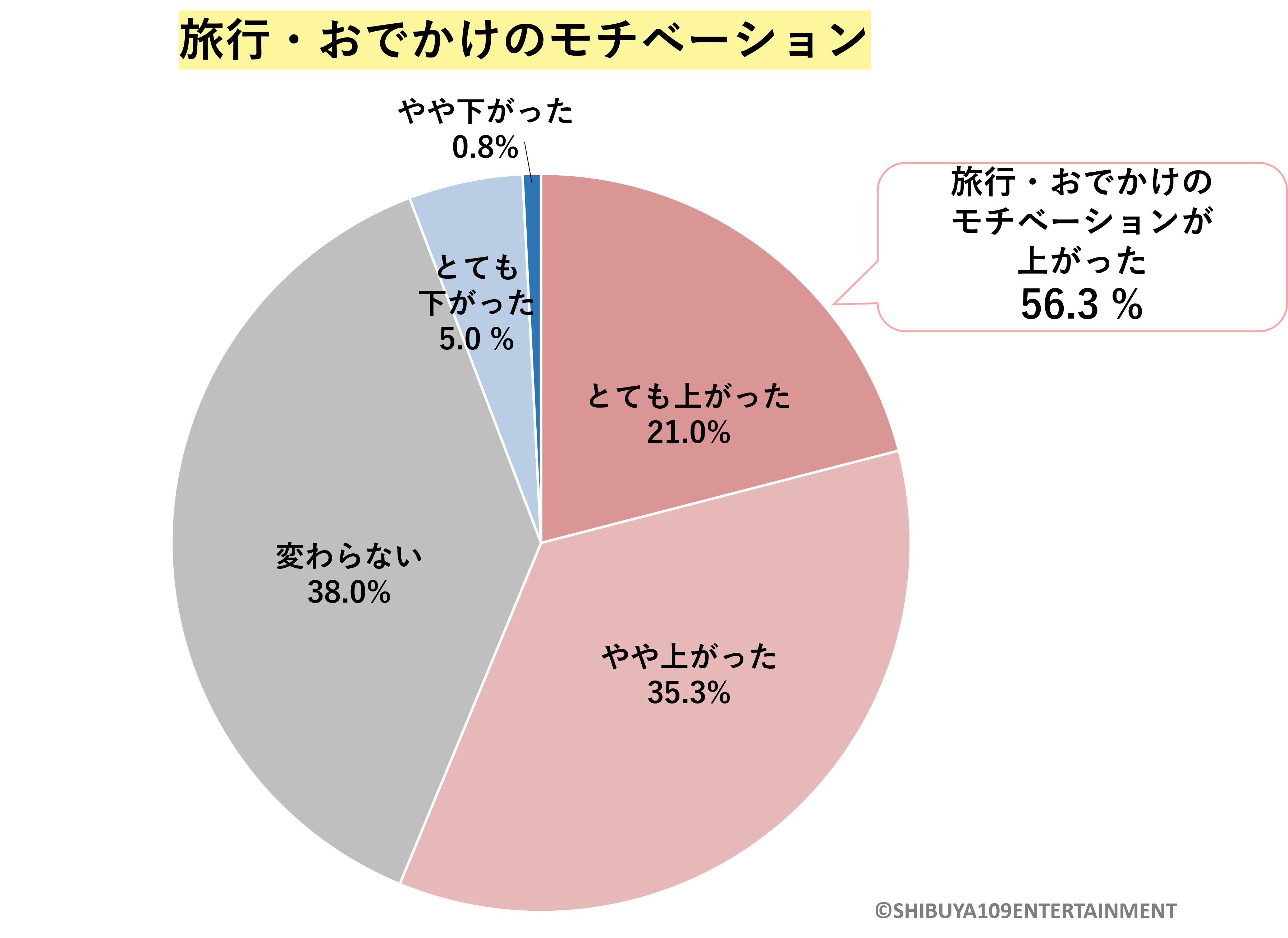 旅行やおでかけに対するモチベーション※図3は「あがった」という回答が56.3%と半数を超えており、外出自粛の規制緩和に伴い、おでかけへのモチベーションの高まりが感じられます。