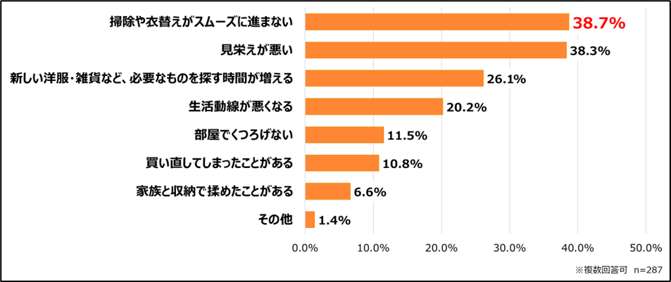 この結果から、収納スペースの不足や整理の遅れは、見た目の問題にとどまらず、生活の質や効率にも影響を及ぼしていることが分かりました。