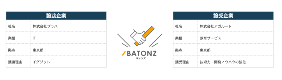 【バトンズ成約事例】国内最大級の難関資格試験オンライン講座運営のアガルート、月額定額制の受託開発事業を展開するプラハをM&A