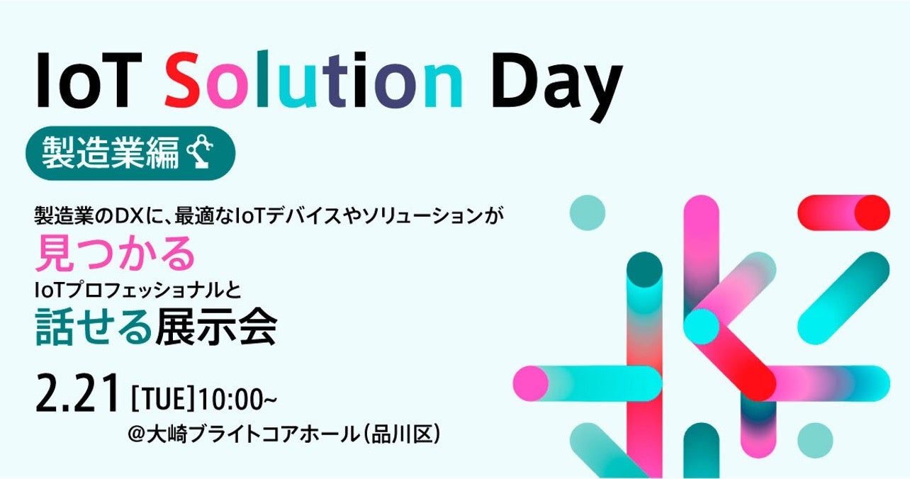 株式会社ソラコムは、IoTソリューションの展示会「IoT Solution Day」を、2023年2月21日(火)に東京・大崎にて開催します。「製造業編」と題して、通信を軸に迅速なIoTシステム開発・運用をサポートするソラコムと、製造業でのIoT活用において豊富な実績や知見をもつソラコムのパートナー企業15社が一堂に会し、最新のIoT活用事例とシステム開発に必要となるデバイスやソリューションをご紹介します。