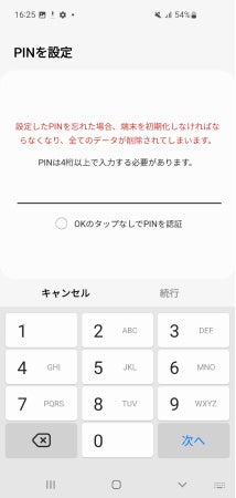 【PINコード】:4桁以上の数字を組み合わせてロックする方法です。昔からある画面ロックの方法でセキュリティ性は低めです。生年月日や記念日など、他人に予測されやすいナンバーを使うと簡単に解除できてしまいます。