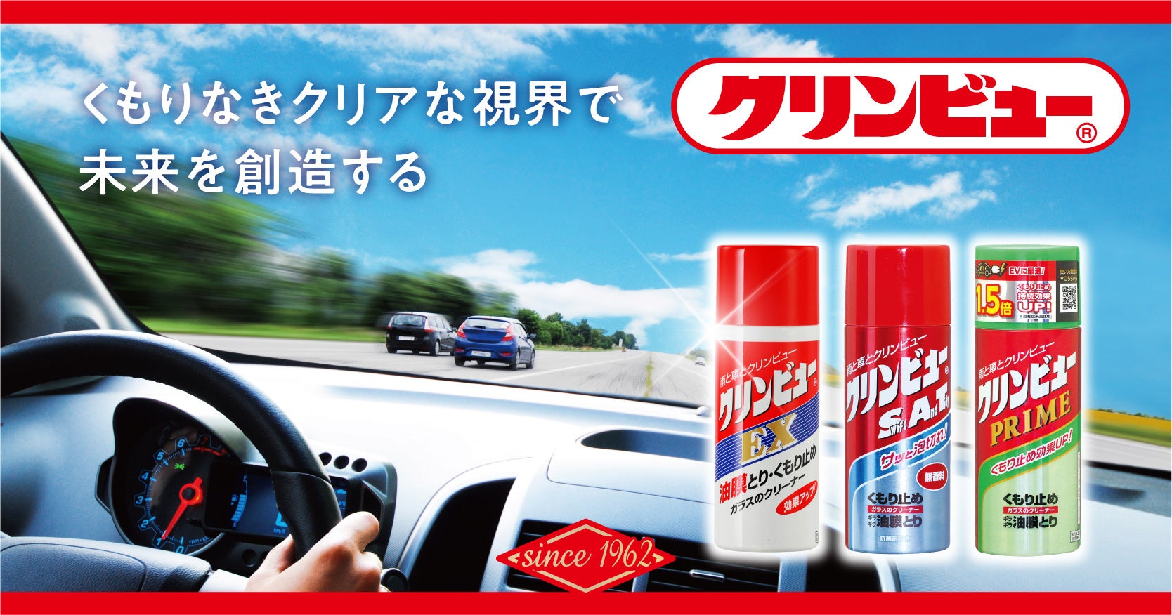 株式会社イチネンケミカルズが販売する車用くもり止めガラスクリーナーです。ガラスに付着した油膜を除去することで光の乱反射によるギラつきを防ぎ、くもり止めとしてはもちろん、雨の日や夜間の安全なドライブの必需品となっています。また、手垢、タバコのヤニ等も素早く除去でき、ご家庭の鏡やガラス等にもご利用いただけます。「愛され続けて60年以上、くもりなきクリアな視界で未来を創造する」。 多くの車好きの方々に支持されており、今年はくもり止め効果の持続期間が1.5倍の「クリンビューPRIME」を発売。EVに最適なクリンビューへと進化を遂げています。