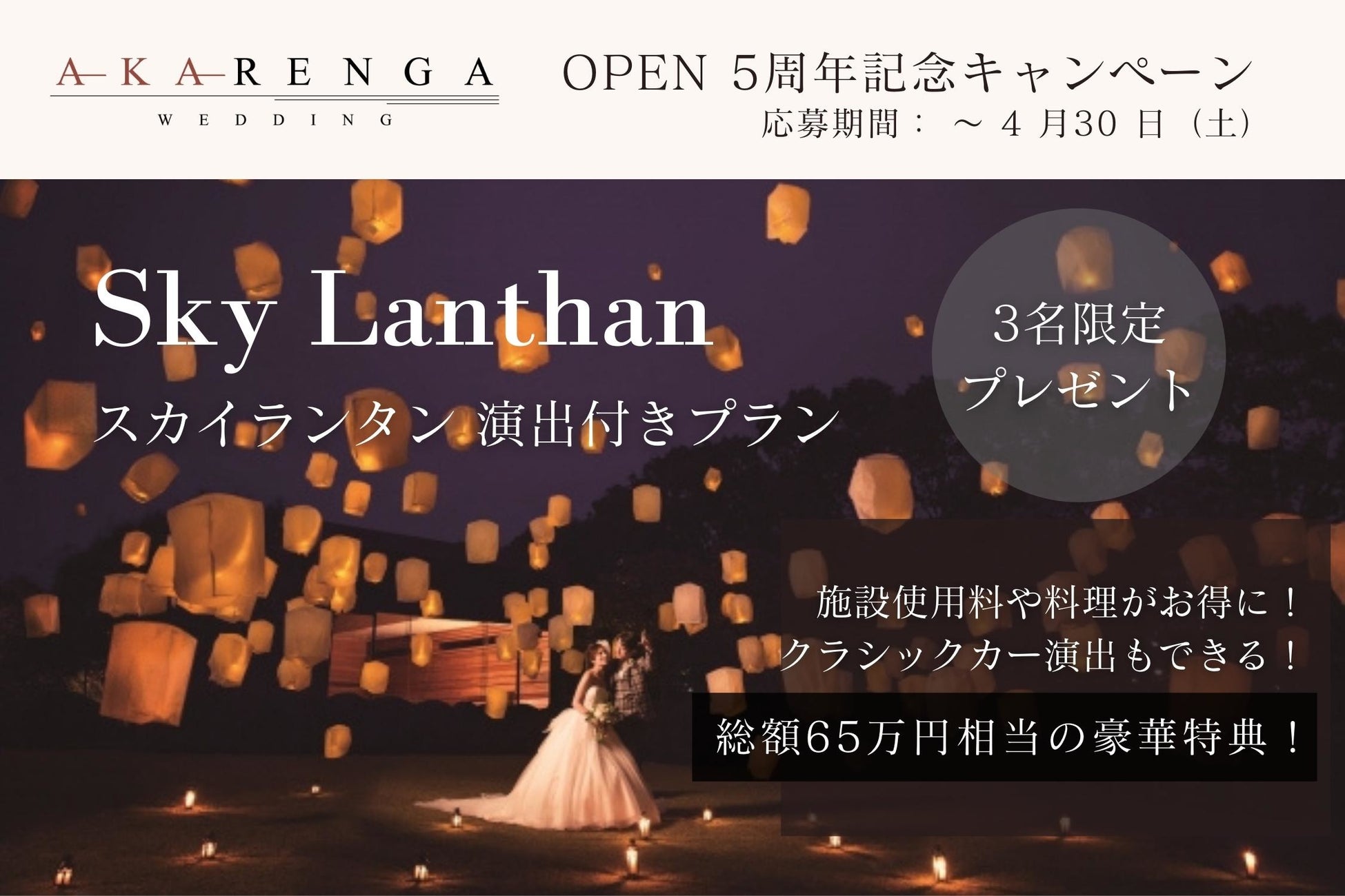 OPEN5周年記念!AKARENGA WEDDINGが【総額65万円相当】幻想的なスカイランタン演出が叶うSNSキャンペーンを開始