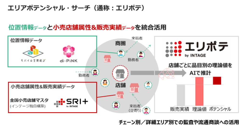 株式会社インテージ(本社:東京都千代田区、代表取締役社長:檜垣 歩、以下インテージ)は、店舗や商圏の特徴や人口動態変化をAIによって解析し、店舗ごとの販売ポテンシャルを推計する「エリアポテンシャル・サーチ」を正式サービスとして提供開始し、アサヒ飲料株式会社(本社:東京都墨田区、代表取締役社長:米女 太一)と先行的に取り組みを実施いたします。本取り組みにおいて、インテージはエリアポテンシャル・サーチの提供を通じて、アサヒ飲料による店舗ごとの商品構成の最適化や販売計画の策定を支援してまいります。