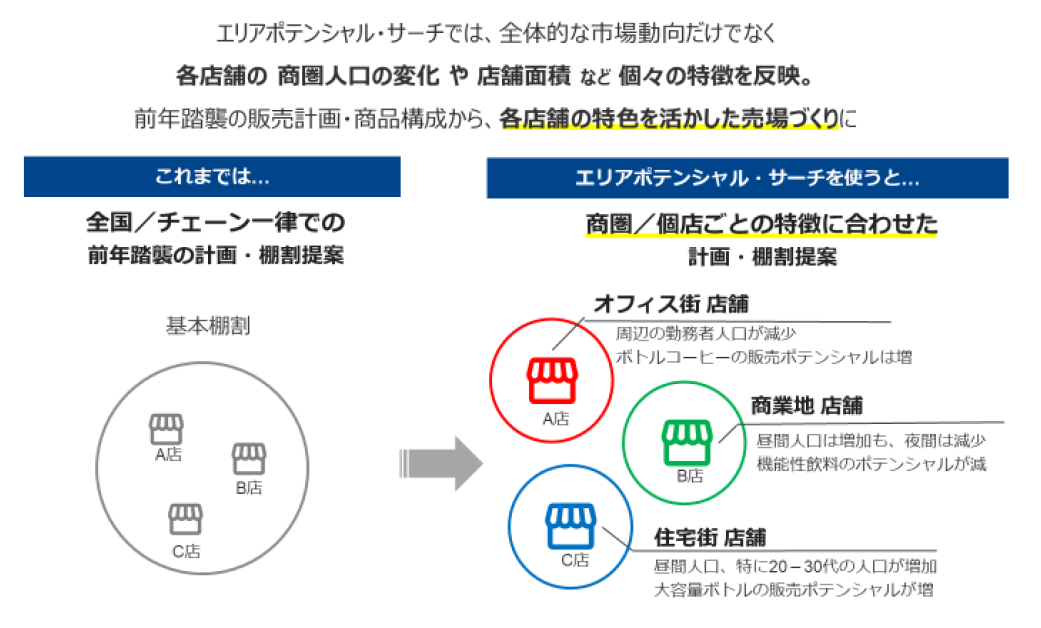 「エリアポテンシャル・サーチ」を正式リリース ~アサヒ飲料での売り場提案における実践活用を先行的に開始~