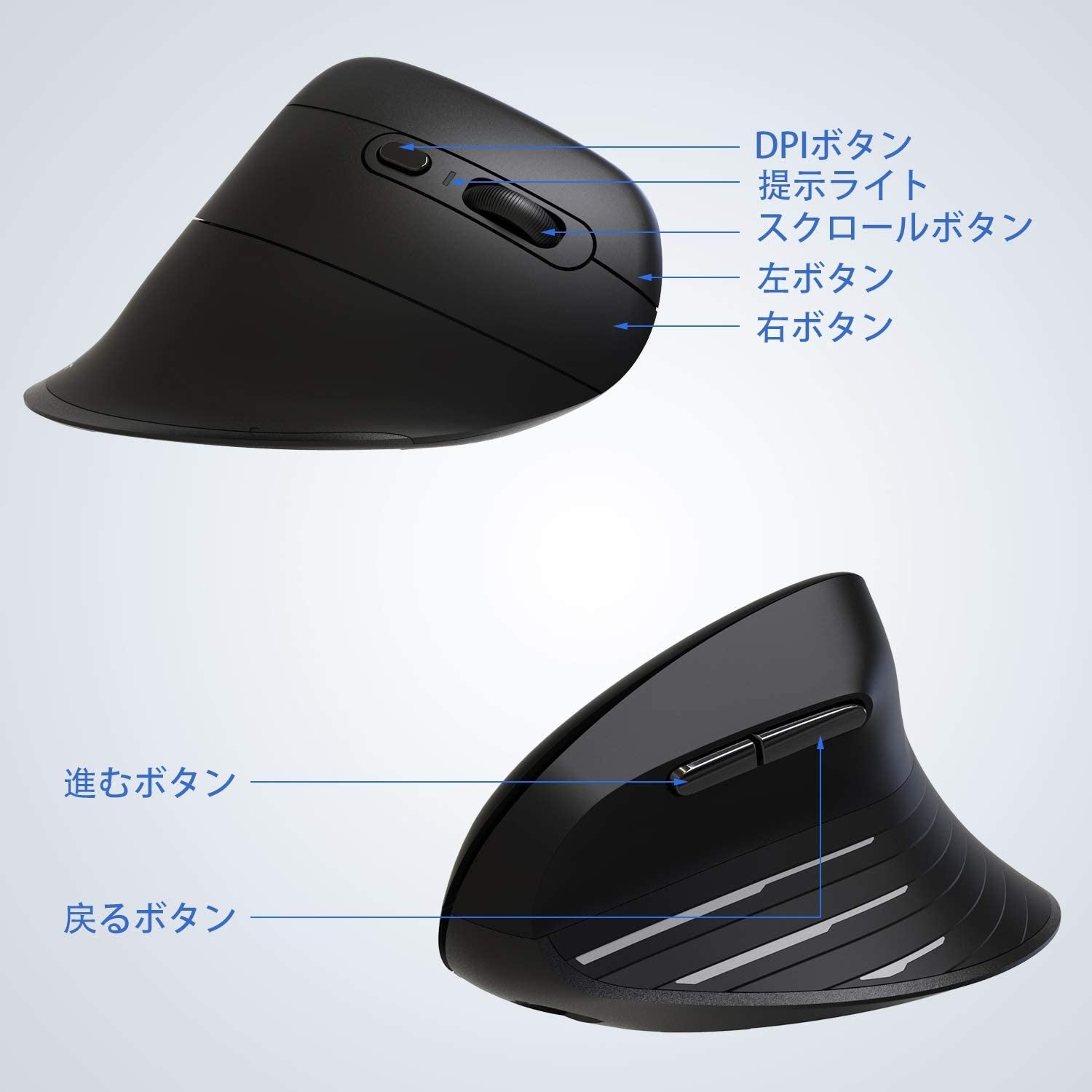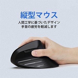人間工学に基づいた縦型デザインにより一般的な平面マウスの疲労感、不快感を軽減させます。マウス本体のなめらかな曲線が手のひらにフィットし快適な操作感を実現しました。左ボタン、右ボタンは極めて静音のためオフィスでも周りを気にせず使用することができます。またテレワークでの長時間作業でも手が疲れにくくテレワークの必須アイテムになること間違いなしです。
