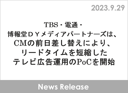 TBS・電通・博報堂DYメディアパートナーズは、CMの前日差し替えにより、リードタイムを短縮したテレビ広告運用のPoCを開始