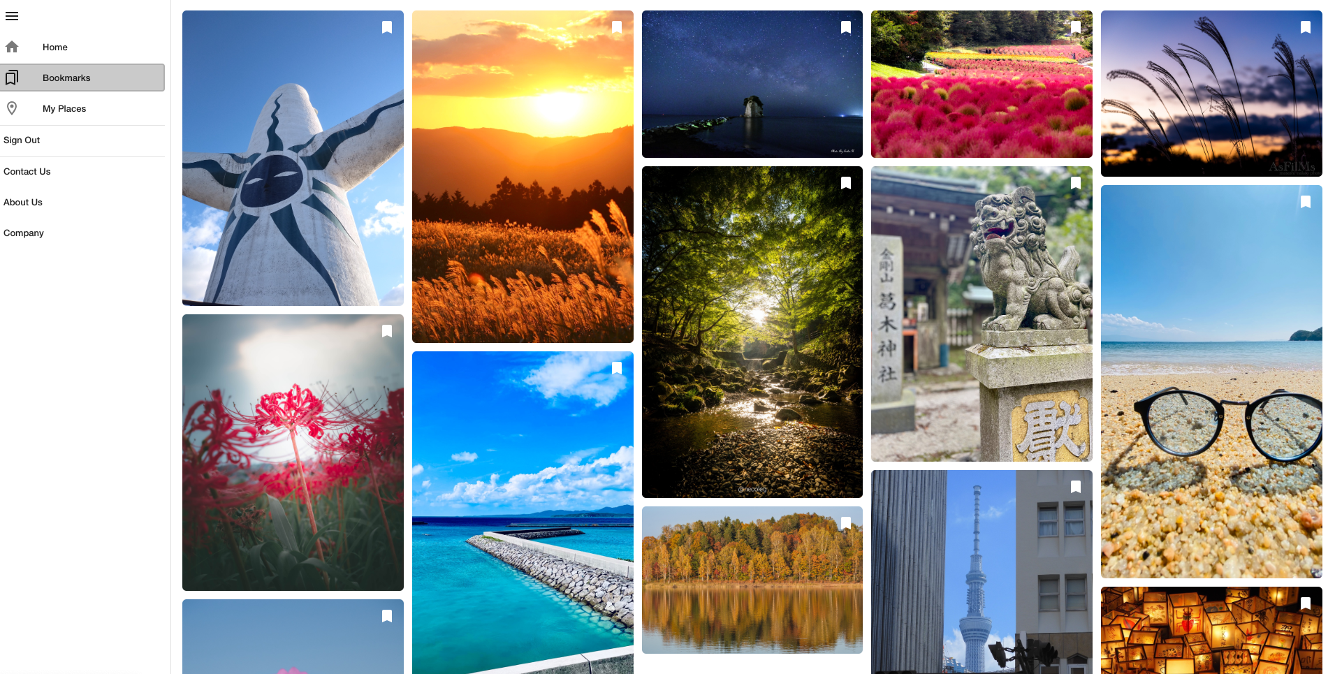 2. ログイン後、「Home」から気になる写真をブックマークを使用して保存してください。「Bookmarks」のタブから保存した写真をいつでも見返すことができます。