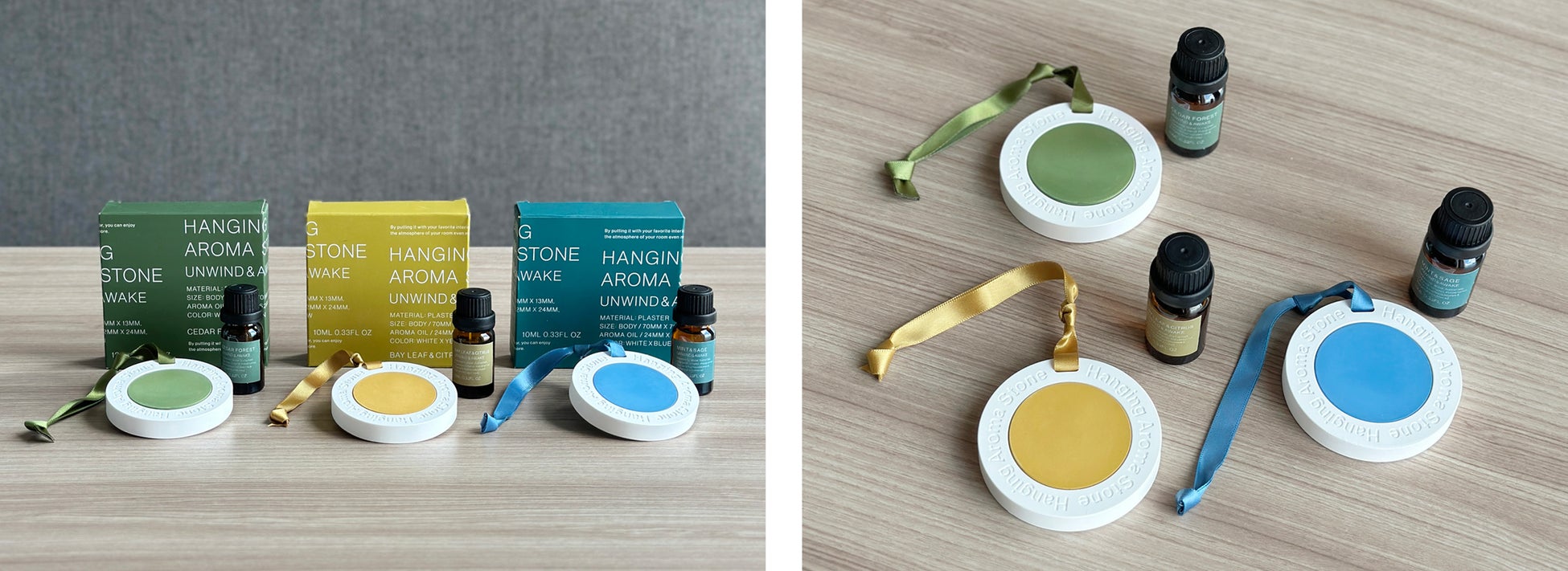 付属のアロマオイルを適量たらし、吊り下げて香りを楽しみます。