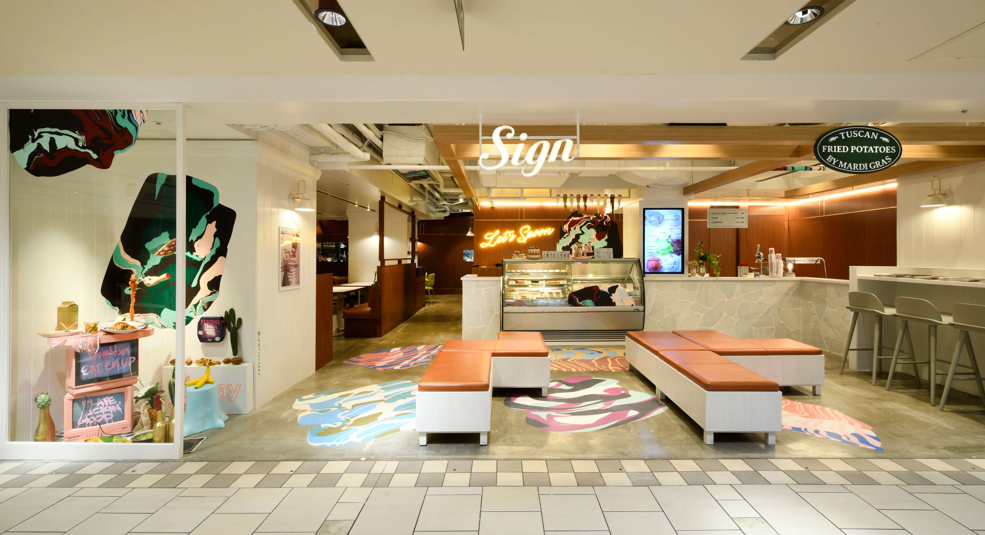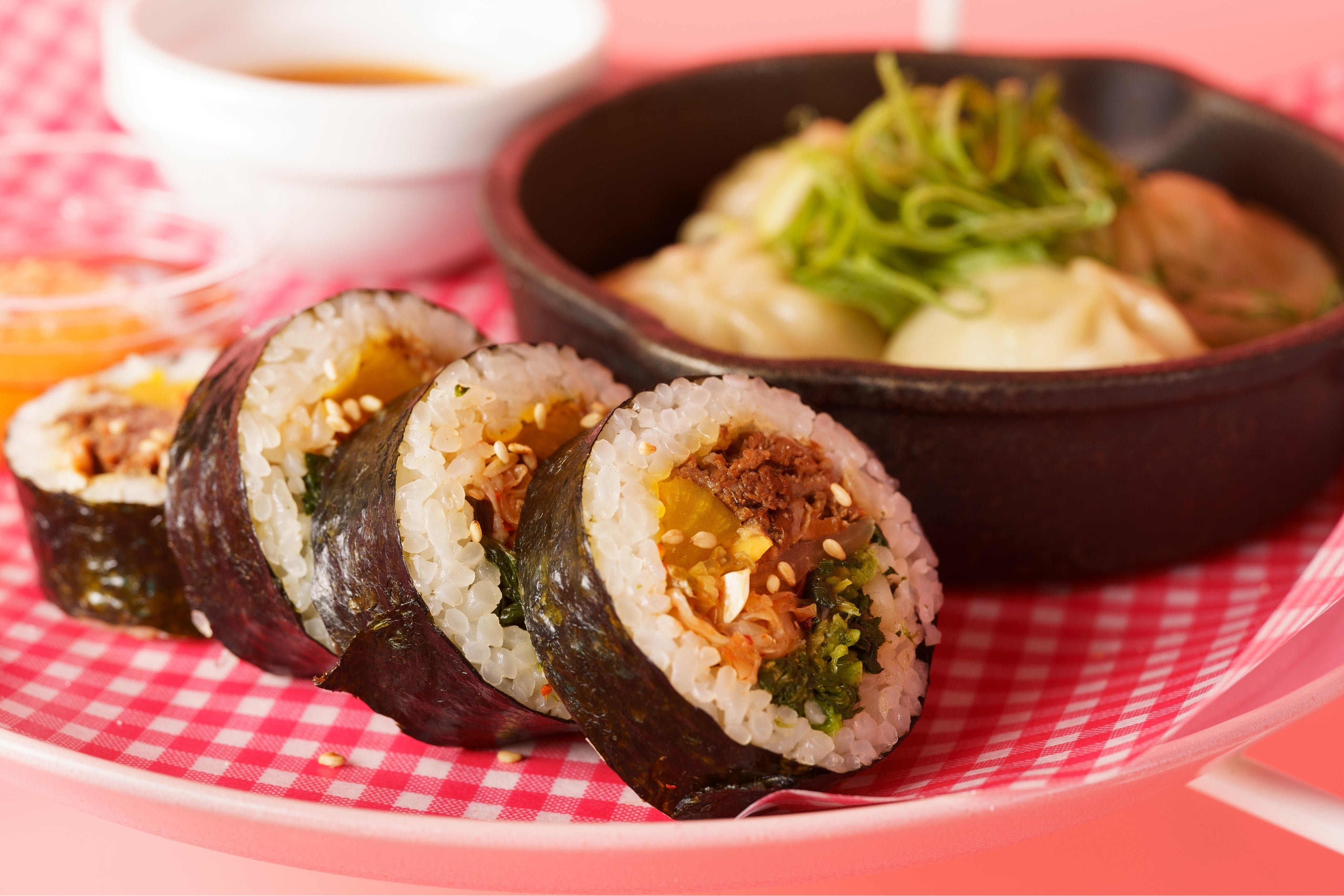 さらにセイボリーが並ぶ下段には、もっちりとした食感の「韓国式肉餃子」とSign吉祥寺で大人気の牛すじと九条ネギの温玉のせライスをキンパにアップデートした「Signオリジナル牛すじキンパ」をラインナップ。