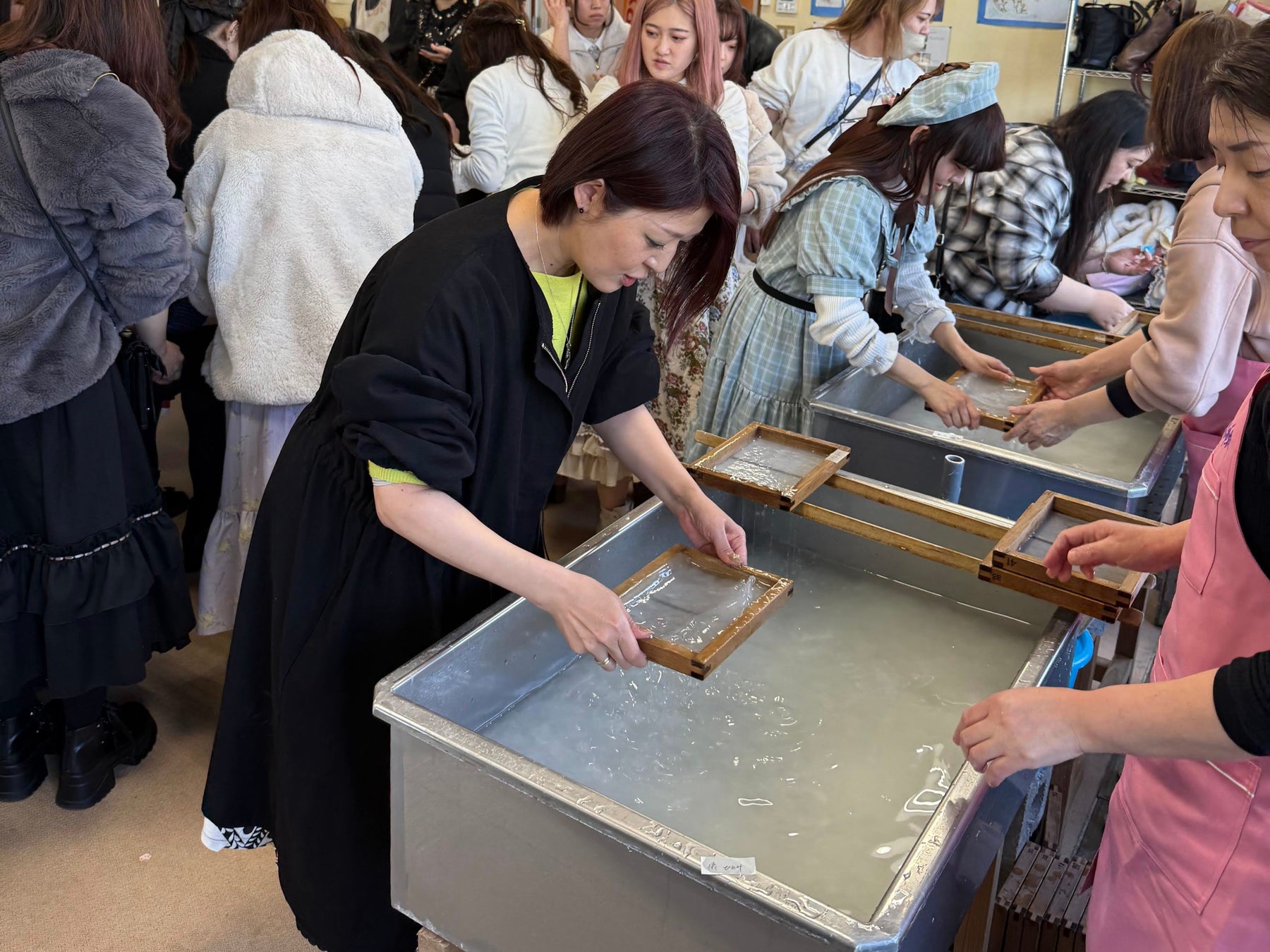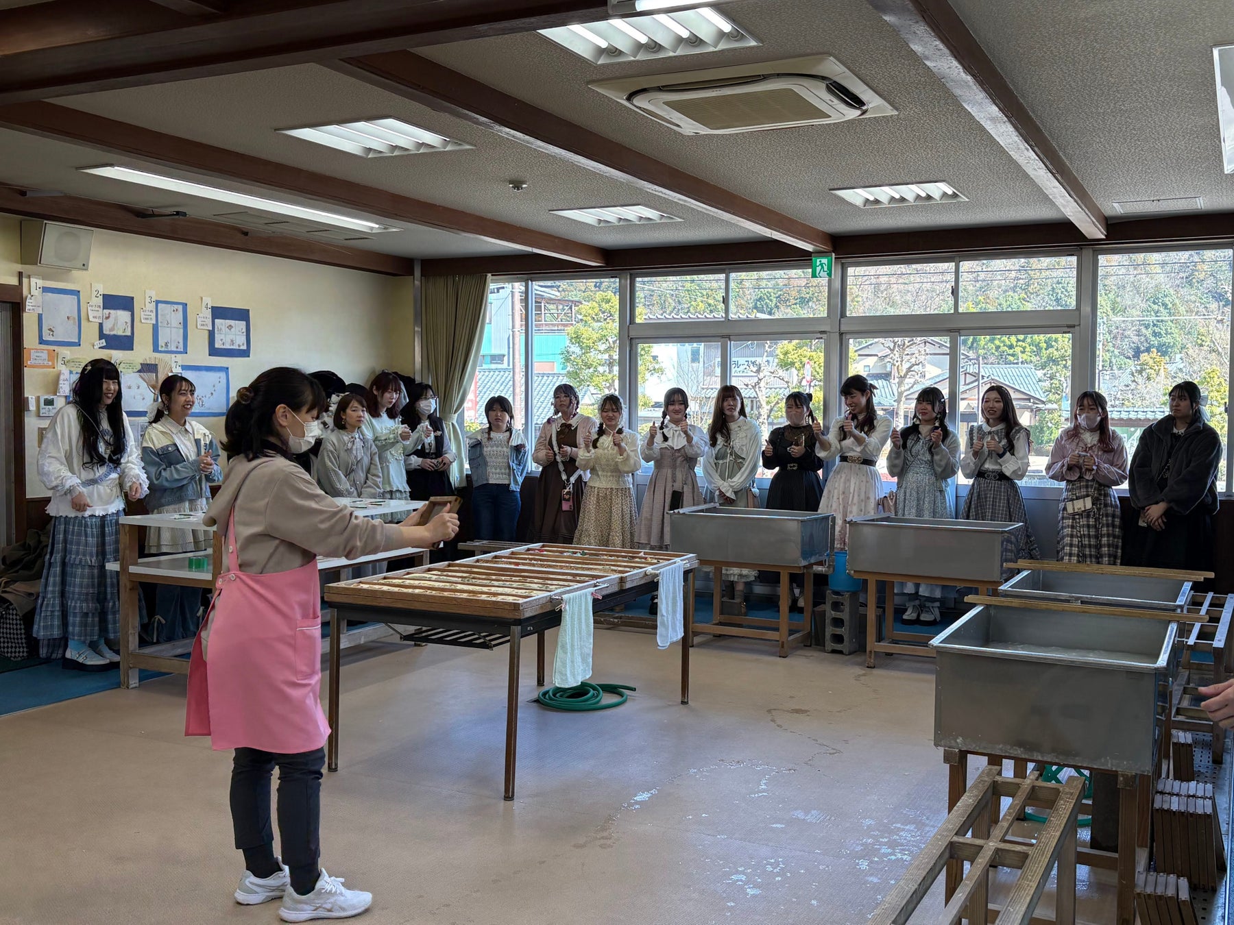 そのほかにも伝統工芸である越前和紙の体験プログラムも実施され、実際に紙すきを体験する場面では社員が思い思いの飾り付けを行ってオリジナル和紙を作成し、福井が誇る伝統工芸の価値を実感していただきました。