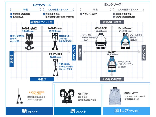 本イベントでは、腰の負担を軽減するマッスルスーツシリーズの装着デモ体験に加え、新たなラインナップとなる新製品3種を展示いたします。