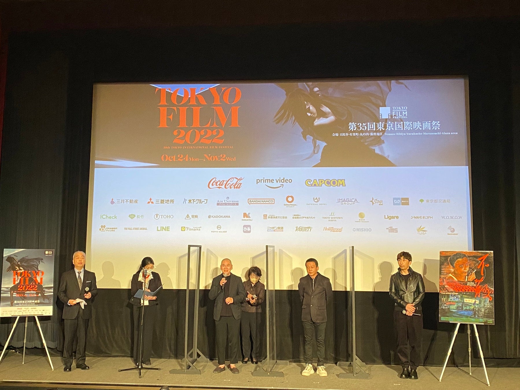 右から東京国際映画祭石坂健治、東京フィルメックス神谷直希、Anong Houngheuangsy、ツァイ・ミンリャン監督、謝長廷駐日代表、東京国際映画祭市山尚三、リー・カンション、プロデューサー王雲霖、台湾文化センター王淑芳センター長