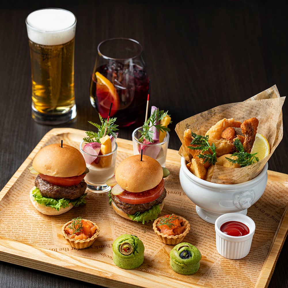この「スライダーバーガープレート」は、カジュアルかつ料理は少なくちょい飲み程度にクイックに済ませたい方や、歓送迎会などのちょっとした集まり後の2次会やプチ女子会で少しだけ飲みたいという方におすすめのドリンク2杯付きのバーメニューです。